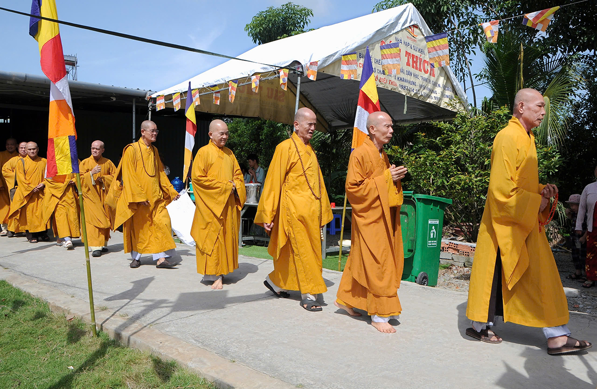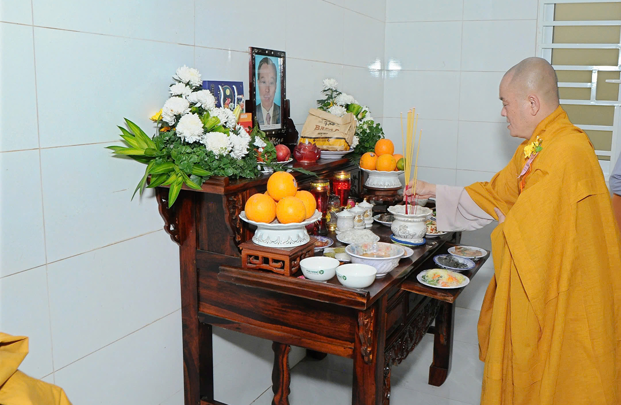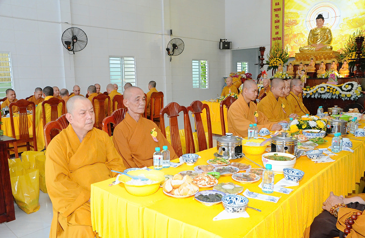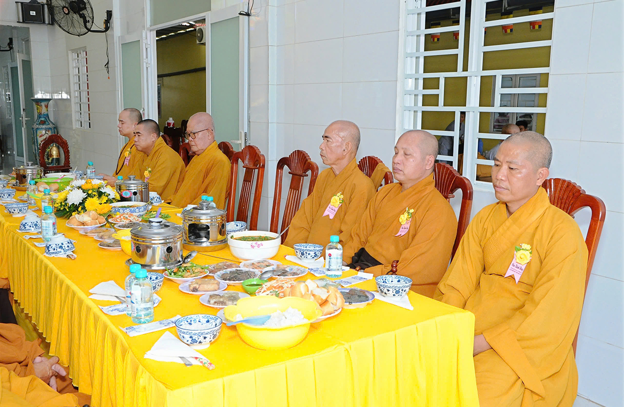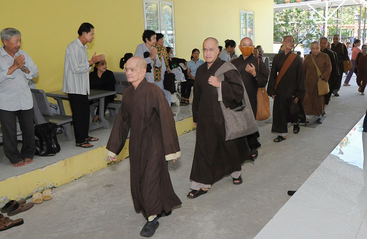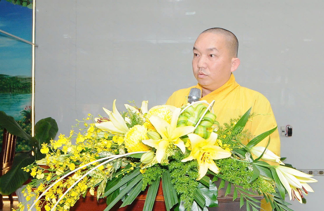 Đại chúng lắng lòng nghe lời Đạo từ về tinh thần hiếu đạo của Hòa thượng Thích Minh Thiện- Ủy viên HĐTSTƯ, Phó Ban Hoằng pháp trung ương, Trưởng Ban Trị sự GHPGVN tỉnh Long An). Trong lời đạo từ Hòa thượng nhấn mạnh, “Từ khi Phật giáo gia nhập vào Việt Nam, ngày Lễ Vu lan (ngày rằm tháng Bảy hằng năm) đã trở thành truyền thống văn hóa của người Việt Nam. Tinh thần báo hiếu, báo ân, phù hợp với tinh thần tín ngưỡng tôn thờ Tổ tiên thiêng liêng của người dân Việt. Qua quá trình du nhập và phát triển hơn hai ngàn năm tại Việt Nam, đến nay giá trị văn hóa này đã trở thành một đạo nghĩa của dân tộc Việt Nam; Trong đó, nghi thức “Bông hồng cài áo” mang một ý nghĩa rất đặc biệt. Ông cha ta luôn răn dạy không phúc nào lớn hơn phúc Hiếu kính, không tội nào nặng bằng tội bất kính với mẹ cha. Trong khi đó, Phật pháp cũng dạy cha mẹ trong nhà chính là Phật ở đời. Đạo thờ ông bà tổ tiên của người Việt đã gặp gỡ Phật giáo ở điểm này và người Việt đã lấy ngày rằm tháng 7 là dịp để mong cầu Đức Phật gia trì để tổ tiên được siêu thoát, cha mẹ, ông bà được bình an. Hòa thượng nhắc nhở đại chúng, trong lễ Vu Lan, mọi người cần nhớ tới 4 ơn cao cả. Đó là ơn Tam Bảo tế độ, ơn Quốc gia che chở mình, ơn thầy cô dạy bảo và ơn tất cả mọi người trong xã hội. Hòa thượng cũng nhắc về tấm gương đạo hiếu của ngài Mục Kiền Liên, là một trong 10 thánh đại đệ tử của Đức Phật. Qua đó, Hòa thượng sách tấn đại chúng hãy soi rọi cuộc sống của chính mình, dù có ở địa vị nào, lớn tuổi ra sao vẫn là những đứa con nhỏ trong mắt cha mẹ. Trong dịp Đại lễ Vu lan, mọi người nên làm những điều thánh thiện nhất. Con cái phải nhìn lại xem mình đã hiếu kính, phụng dưỡng cha mẹ thế nào. Ngược lại, mẹ cha cũng phải xem đã làm hết thiên chức của mình chưa. Bên cạnh đó, mọi người cũng phải san sẻ tình yêu thương tới mọi người. Vu Lan chỉ là tháng trọng tâm nhưng việc hiếu nghĩa cần phải thực hành cả đời này. Anh em hòa thuận, con cháu phụng dưỡng cha mẹ, ông bà. Vu Lan không chỉ là nghi lễ riêng của Phật giáo, ngày lễ lớn đối với những người con Phật mà còn đi vào truyền thống đạo đức, trở thành một nét văn hóa đẹp, thấm sâu trong tâm thức của hàng triệu triệu người Việt Nam hàng nghìn năm nay ./