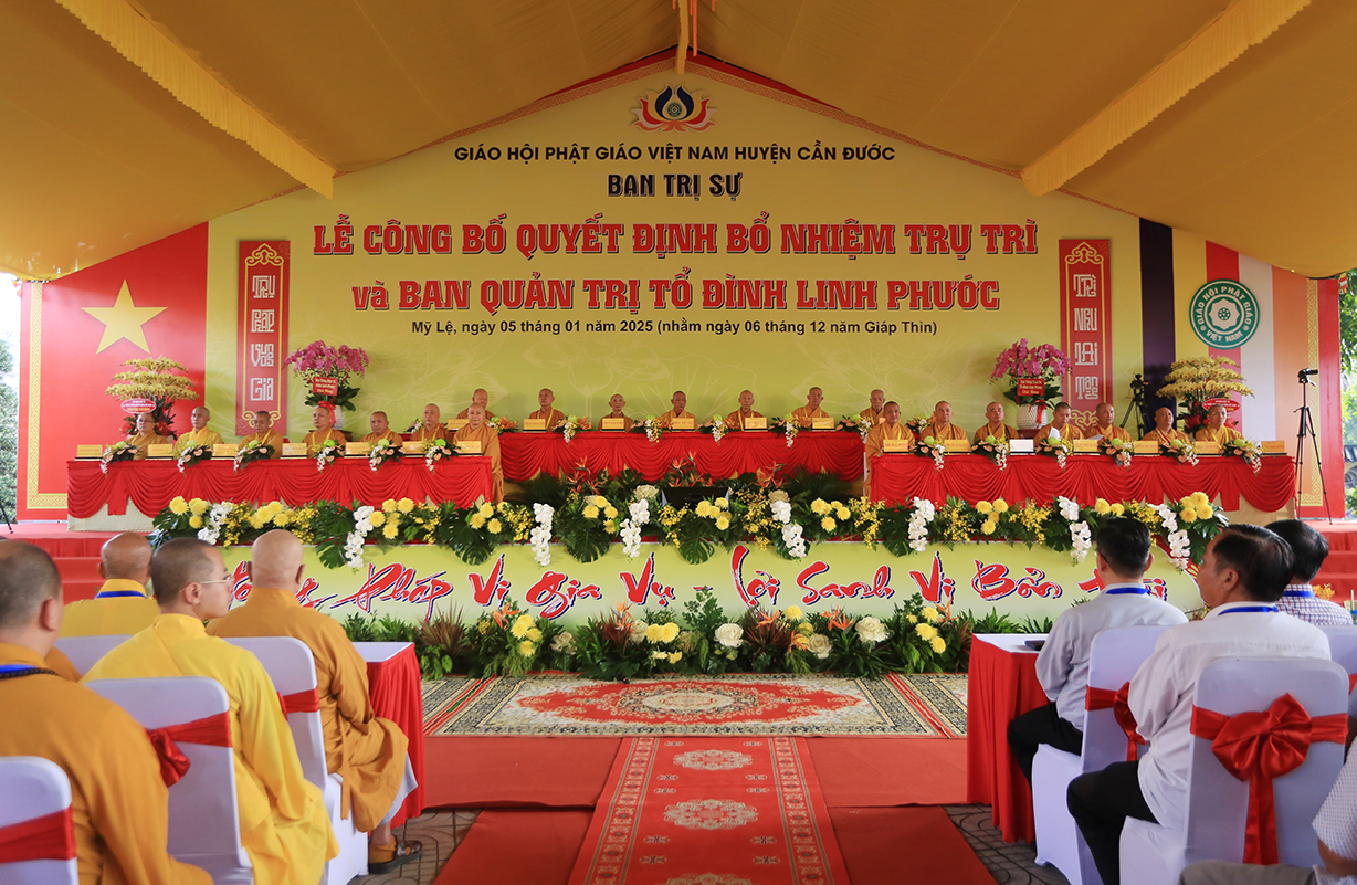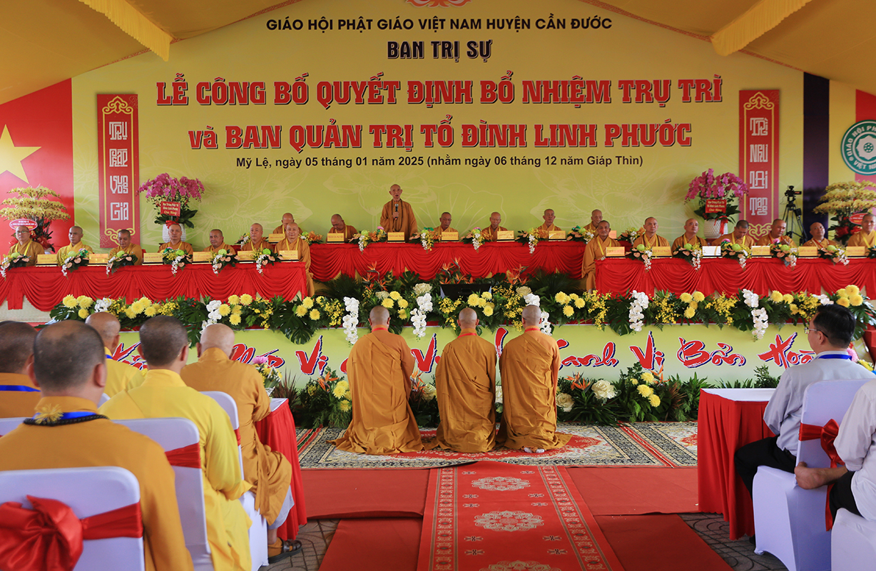 Thể theo tinh thần “Hành Như Lai xứ, Tác Như Lai sự” tiếp nối sự nghiệp Thầy Tổ trên lộ trình hoằng truyền chánh pháp. Ngày 05 tháng 01 năm 2025 (nhằm ngày 06 tháng 12 năm Giáp Thìn), Ban Trị sự GHPGVN huyện Cần Đước, Môn phong Tổ đình Linh Phước huyện Cần Đước, trang nghiêm thiết lễ Bổ nhiệm Trụ trì và Thành lập Ban Quản Trị Tổ đình Linh Phước, ấp Cầu Chùa, xã Mỹ Lệ, huyện Cần Đước, tỉnh Long An.