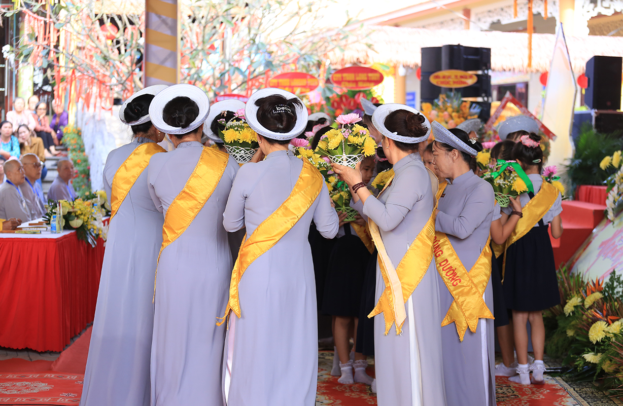 Buổi lễ đón nhận nhiều lãng hoa, khánh vàng chúc mừng từ: Hòa thượng Thích Thiện Huệ, Hòa thượng Thích Minh Thiện, BTS GHPGVN tỉnh Long An, Ban Dân vận – Ban Tôn giáo tỉnh Long An; Chư tôn đức Tăng, Ni, BTS GHPGVN tỉnh Bà Rịa – Vũng Tàu, BTS GHPGVN huyện Cần Đước; Chư Ni huyện Cần Đước; Huyện ủy – HĐND – UBND – UB MTTQ huyện Cần Đước; Công an huyện Cần Đước; UBND xã Mỹ Lệ, quý Huynh đệ đồng học,… và nhiều phần quà khác.
