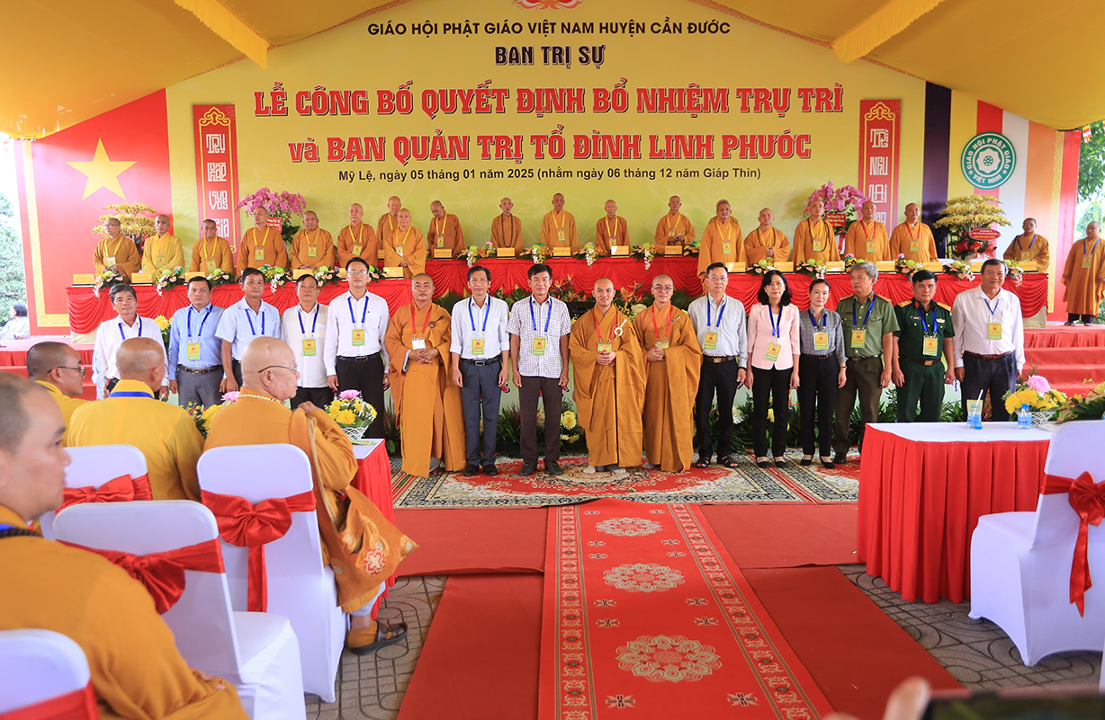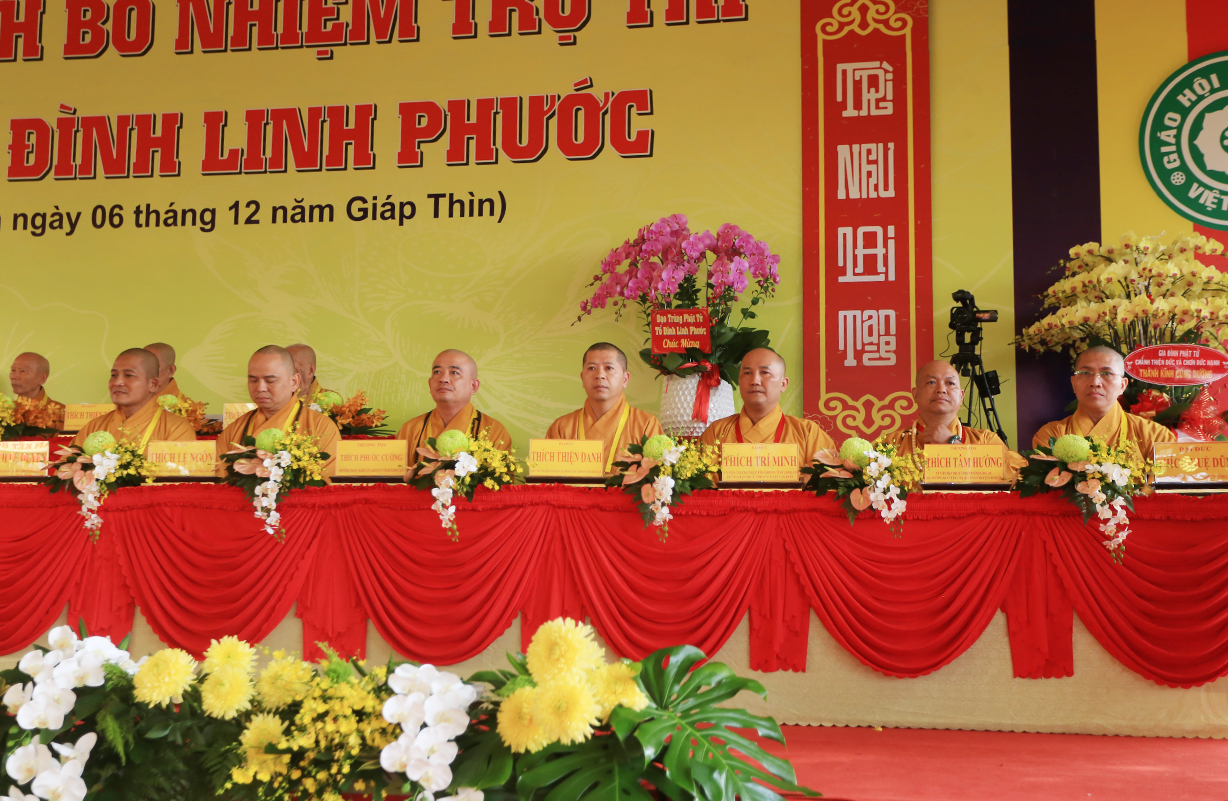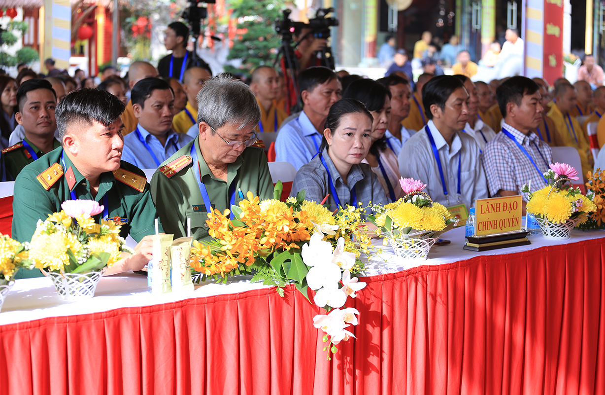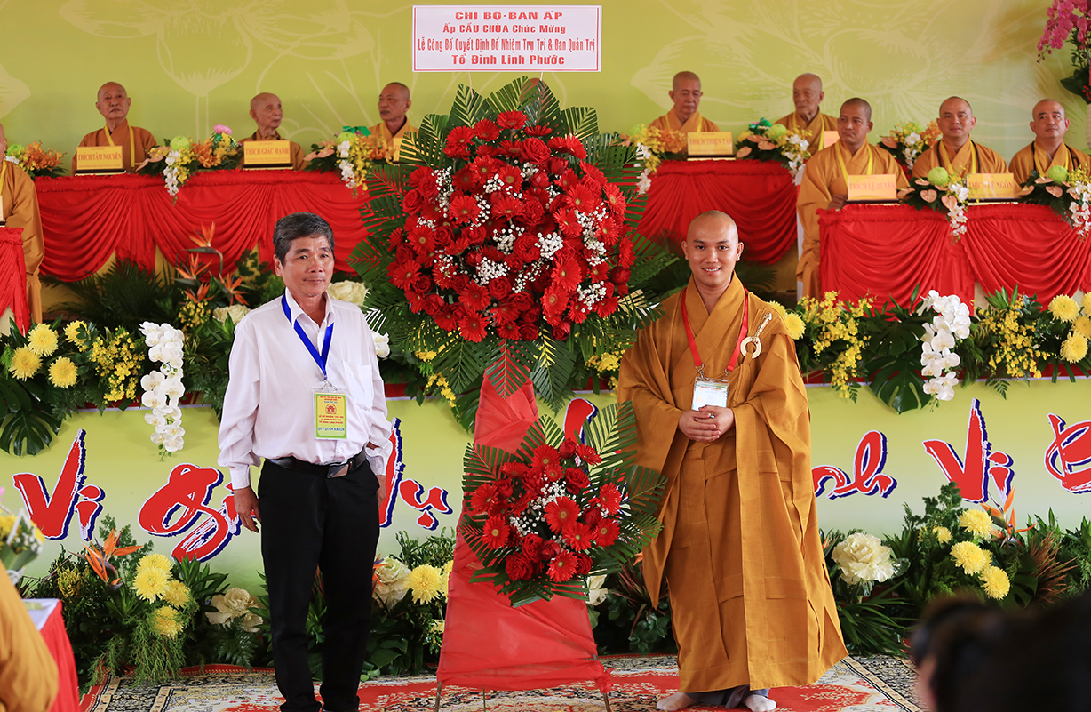 Buổi lễ được cung nghinh sự quang lâm chứng minh của Trưởng Lão Hòa thượng HT. Thích Thiện Huệ – Thành viên HĐCM, Chứng minh BTS GHPGVN tỉnh Long An; HT. Thích Giác Hạnh – Chứng Minh BTS GHPGVN huyện Cần Đước, Viện Chủ Tổ đình Linh Phước; Hòa thượng Thích Huệ Hồng, Hòa thượng Thích Thiện Tài – Đồng chứng minh BTS GHPGVN tỉnh Long An ; Hòa thượng Thích Tâm Nguyên, Hòa thượng Thích Thiện Ngọc – Đồng Chứng Minh BTS GHPGVN huyện Cần Đước; Hòa thượng Thích Minh Nghĩa – Chứng minh BTS GHPGVN Quận 4 – TPHCM; Thượng tọa Thích Đức Hoàng – Phó Trưởng BTS GHPGVN tỉnh Long An, Đại đức Thích Lệ Duyên – Phó Trưởng ban kiêm Chánh Thư ký BTS GHPGVN tỉnh Long An; ĐĐ Thích Lệ Ngôn- Phó Ban Trị sự, Trưởng Ban Hoằng pháp GHPGVN tỉnh Long An; Đại đức Thích Thiện Danh – Phó Thư ký kiêm Chánh Văn phòng BTS GHPGVN tỉnh Long An, Thượng tọa Thích Huệ Định – Trưởng Ban Hoằng pháp BTS GHPGVN tỉnh Bến Tre; Thượng tọa Thích Phước Cường- Trưởng Ban Nghi lễ GHPGVN tỉnh Long An; Thượng tọa Thích Nguyên Bình – Uỷ viên Thường trực BTS GHPGVN tỉnh Bà Rịa – Vũng Tàu, Trưởng BTS GHPGVN TP Bà Rịa, TT Thích Minh Huân – Phó Trưởng Ban Thường trực BTS GHPGVN TP Bà Rịa, Đại đức Thích Trí Minh – Ủy viên Ban Thường trực BTS GHPGVN tỉnh Long An, Trưởng BTS GHPGVN huyện Cần Đước; Đại đức Thích Huệ Dũng – Ủy viên Thường trực BTS GHPGVN tỉnh Long An; Thượng tọa Thích Tâm Hướng – UV BTS GHPGVN tỉnh Long An, Phó Trưởng ban Thường trực BTS GHPGVN huyện Cần Đước; Chư tôn đức Ban Thường trực BTS GHPGVN tỉnh Long An, Chư Tôn đức Thường trực huyện Cần Đước; Chư tôn đức Tăng Ni Ban Trị sự GHPGVN tỉnh Bà Rịa – Vũng Tàu, Chư Tôn đức Tăng Ni Trụ trì các Tự viện trong tỉnh Long An, tỉnh Bà Rịa – Vũng Tàu, các tỉnh thành lân cận đồng chứng minh và tham dự.