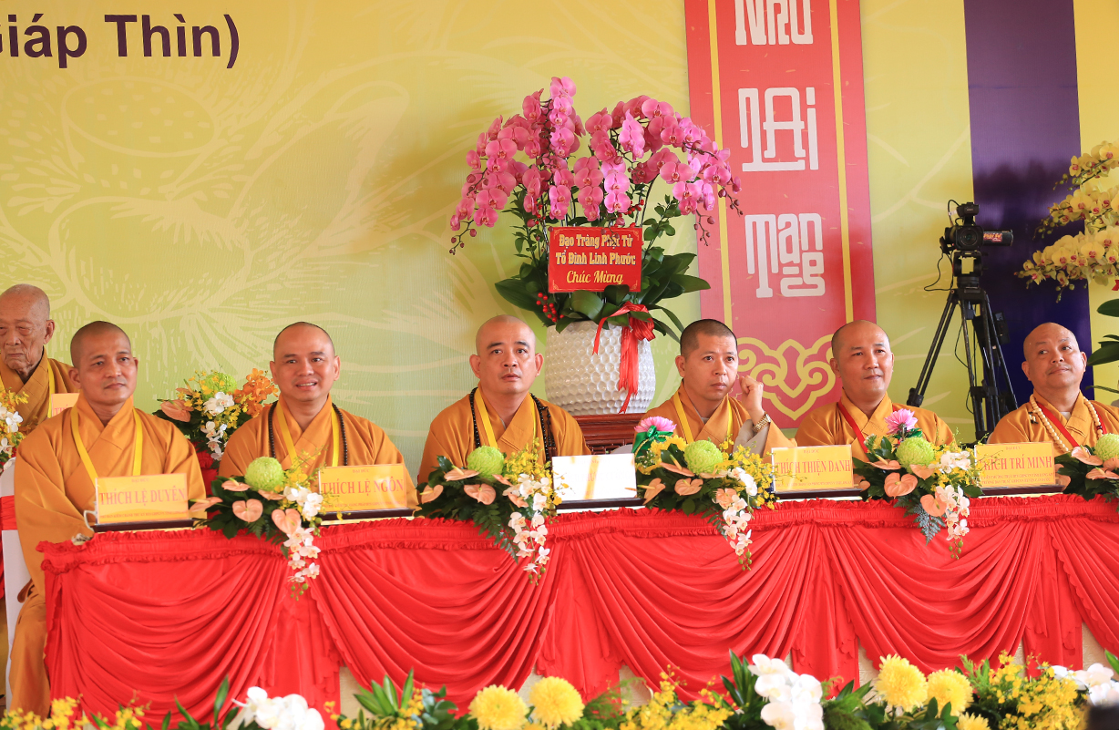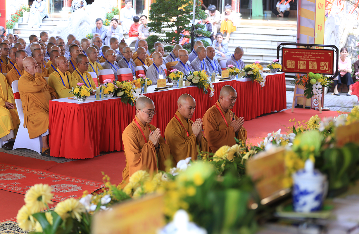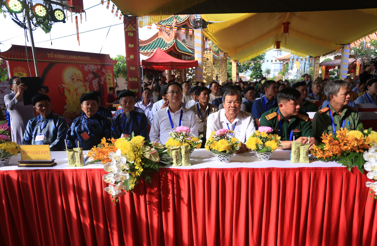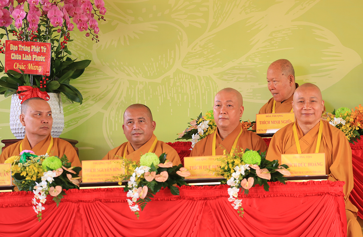 Buổi lễ được cung nghinh sự quang lâm chứng minh của Trưởng Lão Hòa thượng HT. Thích Thiện Huệ – Thành viên HĐCM, Chứng minh BTS GHPGVN tỉnh Long An; HT. Thích Giác Hạnh – Chứng Minh BTS GHPGVN huyện Cần Đước, Viện Chủ Tổ đình Linh Phước; Hòa thượng Thích Huệ Hồng, Hòa thượng Thích Thiện Tài – Đồng chứng minh BTS GHPGVN tỉnh Long An ; Hòa thượng Thích Tâm Nguyên, Hòa thượng Thích Thiện Ngọc – Đồng Chứng Minh BTS GHPGVN huyện Cần Đước; Hòa thượng Thích Minh Nghĩa – Chứng minh BTS GHPGVN Quận 4 – TPHCM; Thượng tọa Thích Đức Hoàng – Phó Trưởng BTS GHPGVN tỉnh Long An, Đại đức Thích Lệ Duyên – Phó Trưởng ban kiêm Chánh Thư ký BTS GHPGVN tỉnh Long An; ĐĐ Thích Lệ Ngôn- Phó Ban Trị sự, Trưởng Ban Hoằng pháp GHPGVN tỉnh Long An; Đại đức Thích Thiện Danh – Phó Thư ký kiêm Chánh Văn phòng BTS GHPGVN tỉnh Long An, Thượng tọa Thích Huệ Định – Trưởng Ban Hoằng pháp BTS GHPGVN tỉnh Bến Tre; Thượng tọa Thích Phước Cường- Trưởng Ban Nghi lễ GHPGVN tỉnh Long An; Thượng tọa Thích Nguyên Bình – Uỷ viên Thường trực BTS GHPGVN tỉnh Bà Rịa – Vũng Tàu, Trưởng BTS GHPGVN TP Bà Rịa, TT Thích Minh Huân – Phó Trưởng Ban Thường trực BTS GHPGVN TP Bà Rịa, Đại đức Thích Trí Minh – Ủy viên Ban Thường trực BTS GHPGVN tỉnh Long An, Trưởng BTS GHPGVN huyện Cần Đước; Đại đức Thích Huệ Dũng – Ủy viên Thường trực BTS GHPGVN tỉnh Long An; Thượng tọa Thích Tâm Hướng – UV BTS GHPGVN tỉnh Long An, Phó Trưởng ban Thường trực BTS GHPGVN huyện Cần Đước; Chư tôn đức Ban Thường trực BTS GHPGVN tỉnh Long An, Chư Tôn đức Thường trực huyện Cần Đước; Chư tôn đức Tăng Ni Ban Trị sự GHPGVN tỉnh Bà Rịa – Vũng Tàu, Chư Tôn đức Tăng Ni Trụ trì các Tự viện trong tỉnh Long An, tỉnh Bà Rịa – Vũng Tàu, các tỉnh thành lân cận đồng chứng minh và tham dự.