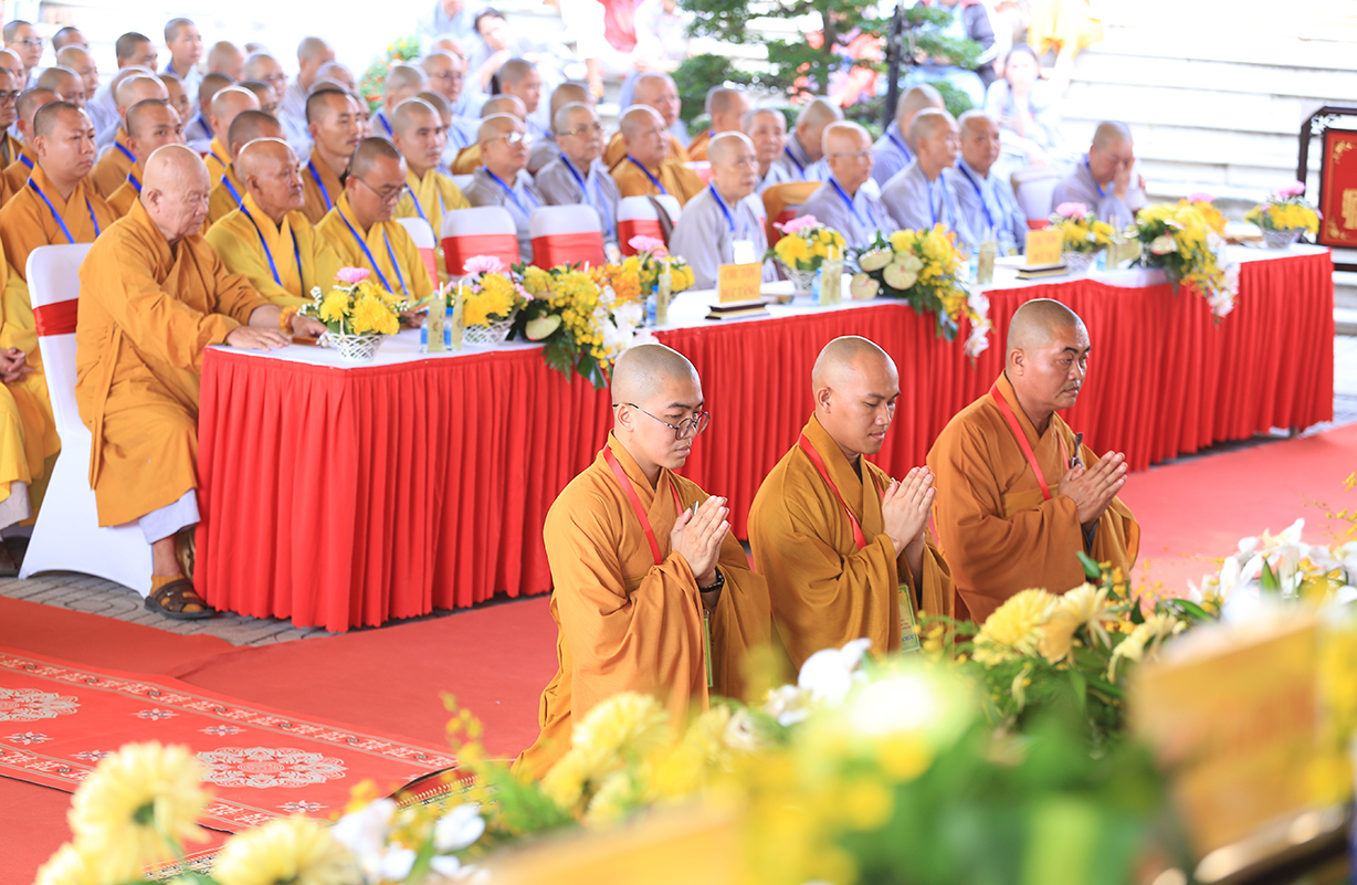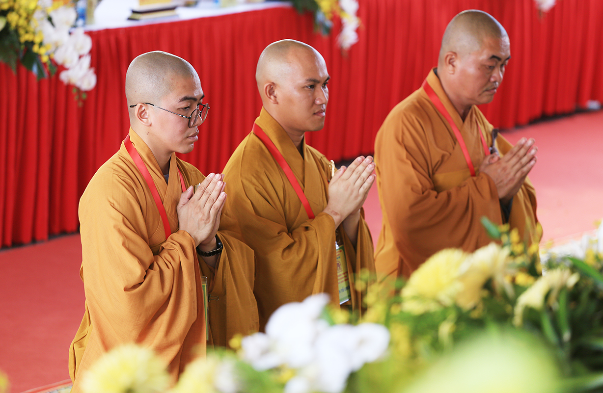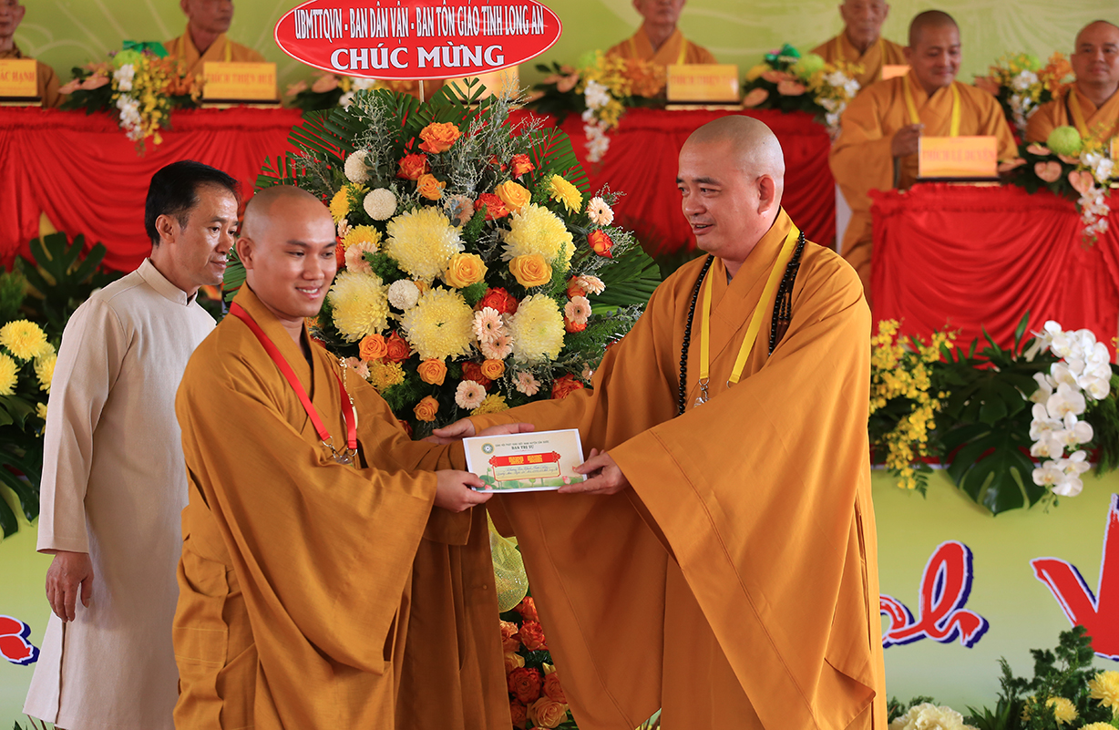 Thay mặt Thường trực BTS GHPGVN huyện Cần Đước, Thượng tọa Thích Tâm Hướng có lời cảm tạ, tri ân Chư Tôn Trưởng lão Hòa thượng, Chư tôn đức Tăng, Ni, Chính quyền các cấp đã luôn tận tâm, giúp đỡ, hỗ trợ về mọi mặt để buổi lễ được thập phần viên mãn, sau đó cung thỉnh chư Tôn đức chứng minh quang lâm trai đường thọ trai hoàn mãn buổi lễ.