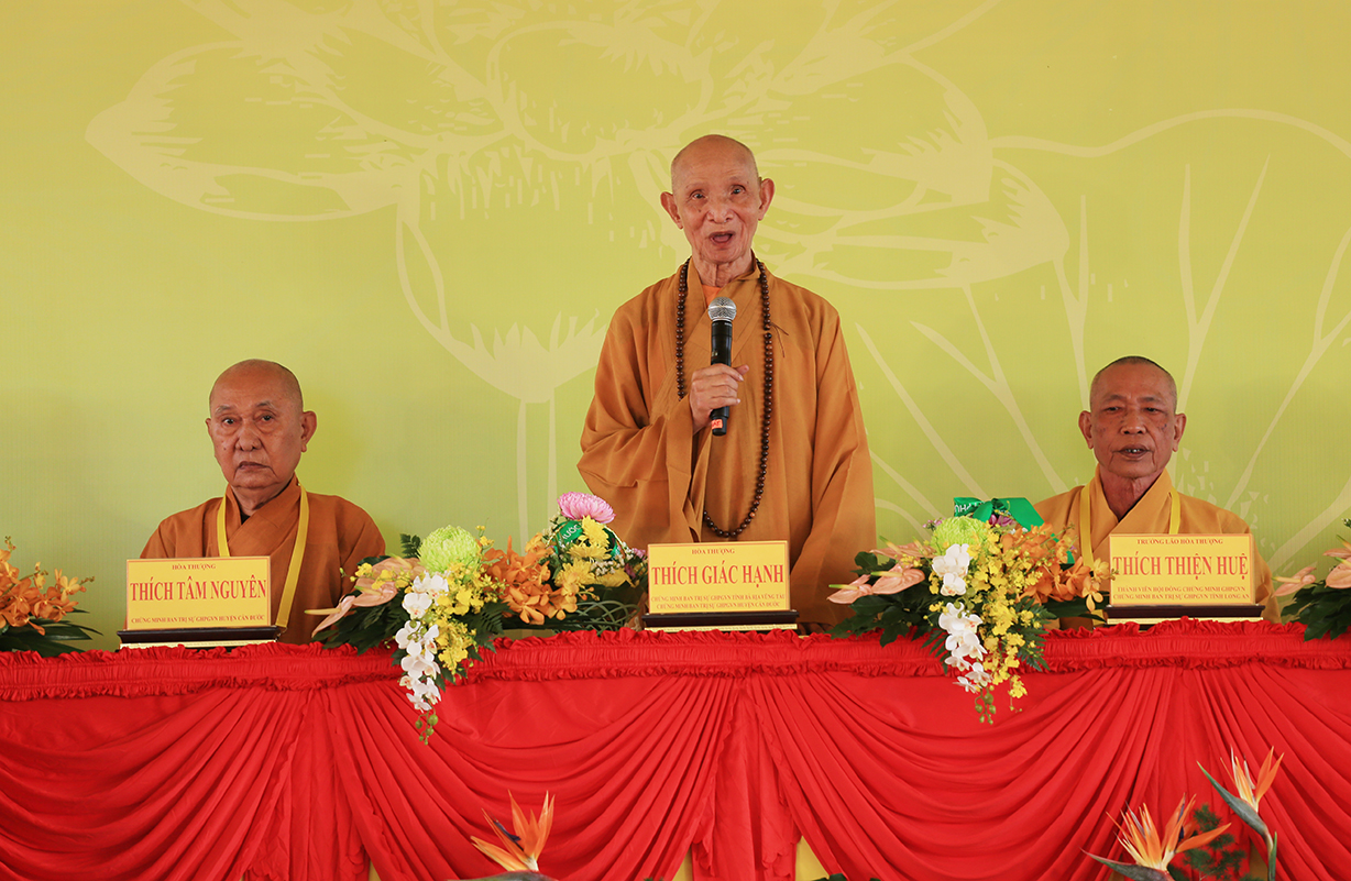 Hòa Thượng Thích Giác Hạnh – Hòa thượng Bổn sư của Đại đức Tân Trụ trì đã ban lời huấn từ sách tấn đến toàn thể thành viên Ban Quản Trị, Hòa thượng đã nhắc lại Tứ trọng ân trong đạo Phật mà người đệ tử Phật cần phải ghi nhớ, bên cạnh đó phải luôn tu tập đúng chánh pháp, hướng dẫn tín đồ tu tập đúng lời Phật dạy, Hòa thượng đã khơi lại lịch sử hình thành Tổ đình Linh Phước, quá trình hành đạo của Đại đức Thích Minh Chánh bên cạnh Ngài, mong cầu Chư Phật gia hộ để mọi Phật sự nơi Tổ đình sẽ được thành tựu tốt đẹp.