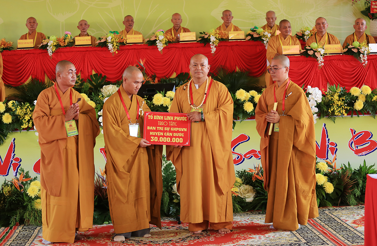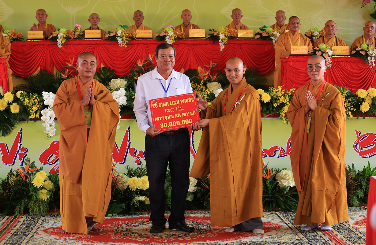 Tại buổi lễ Đại đức Thích Minh Chánh – Tân Trụ trì Tổ đình Linh Phước đã phát tâm cúng dường Ban Trị sự GHPGVN huyện Cần Đước và đóng góp đến UBND xã Mỹ Lệ với tịnh tài mỗi phần 30.000.000 đồng, để tri ân và cảm niệm Chư tôn đức cùng chính quyền sở tại đã luôn bên cạnh để giúp đỡ ngôi Tam Bảo linh phước được trang nghiêm, phát triển như ngày hôm nay.