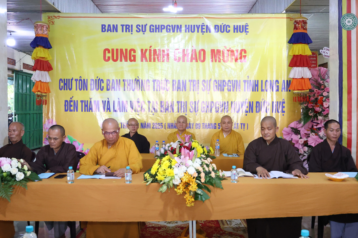 Chiều ngày 05/6/2025 (nhằm ngày 10/5/Ất Tỵ), đoàn công tác Ban Thường trực BTS GHPGVN tỉnh Long An do HT. Thích Minh Thiện – UV HĐTS, Phó ban Hoằng pháp TƯ, Trưởng BTS GHPGVN tỉnh làm trưởng đoàn đã có chuyến thăm và làm việc với BTS GHPGVN huyện Đức Huệ tại Văn phòng BTS GHPGVN huyện – chùa Linh Châu, xã Mỹ Thạnh Đông, huyện Đức Huệ, tỉnh Long An.