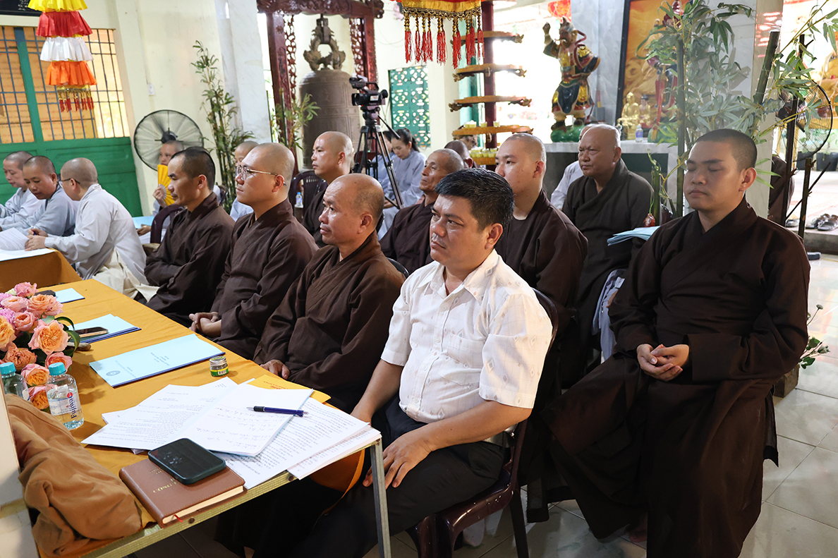 Tiếp đó, TT. Thích Quảng Tâm – Phó Trưởng Ban Thường trực BTS GHPGVN tỉnh cũng đã có lời phát biểu báo cáo khái quát hoạt động nhiệm kỳ qua và đúc kết ý kiến đóng góp của Chư Tôn đức Phật giáo huyện Đức Huệ.