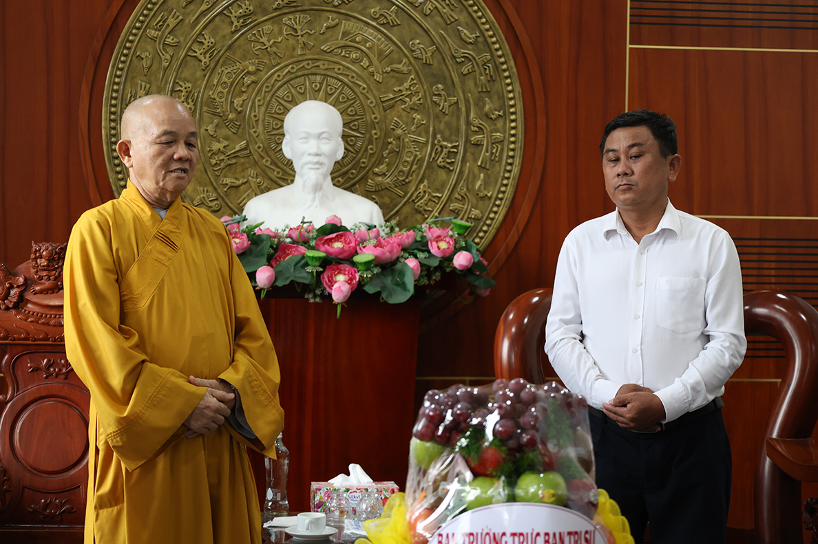 Tháp tùng phái đoàn có: TT. Thích Quảng Tâm – UV HĐTS, Phó ban Từ thiện Xã hội TW, Phó Trưởng ban Thường trực BTS GHPGVN tỉnh; TT. Thích Đức Hoàng – Phó BTS GHPGVN tỉnh; ĐĐ. Thích Lệ Duyên – Phó ban kiêm Chánh Thư ký BTS GHPGVN tỉnh.