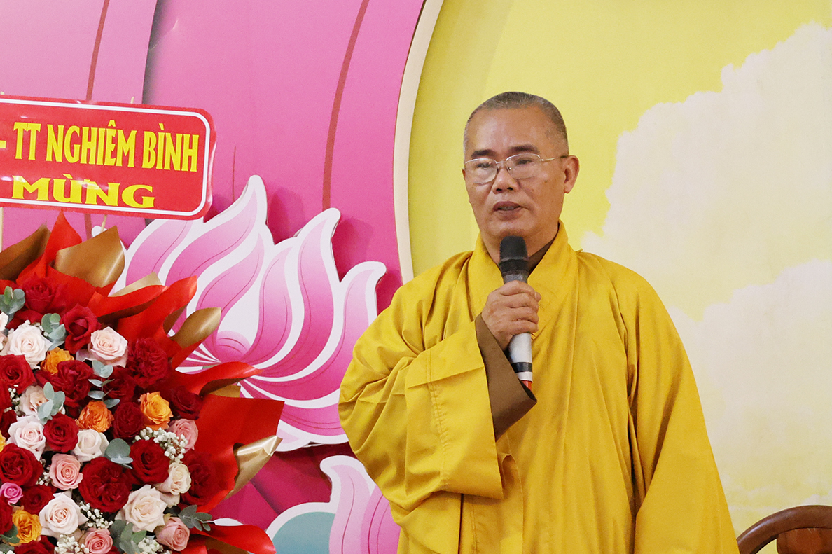 Buổi lễ đón nhận lẵng hoa chúc mừng của: Ban Trị sự GHPGVN tỉnh Tây Ninh, TT. Thích Nghiêm Đạo & TT. Thích Nghiêm Bình, Đảng ủy – HĐND – UBND – UBMTTQVN phường Long An.