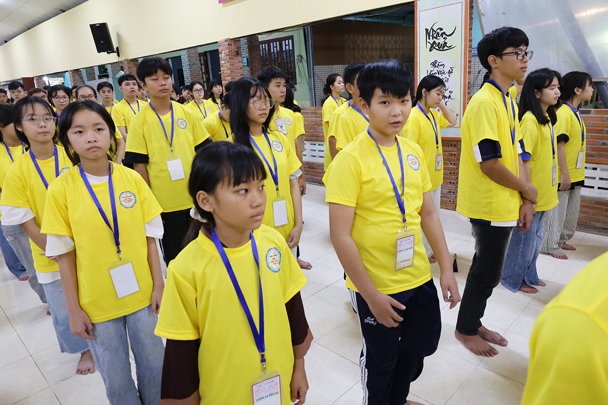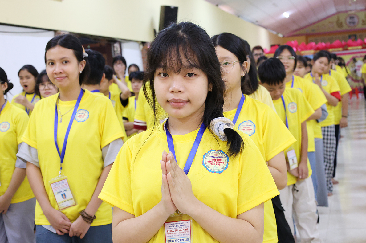 Khóa sinh Hoàng Long – Phước Thu đã thể hiện ca khúc khẩu hiệu khóa tu mùa hè kết hợp phần múa đồng diễn của tất cả khóa sinh qua sự hướng dẫn của Phật tử Trí Tính.