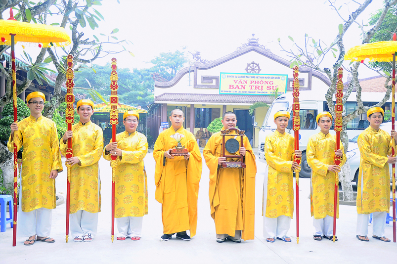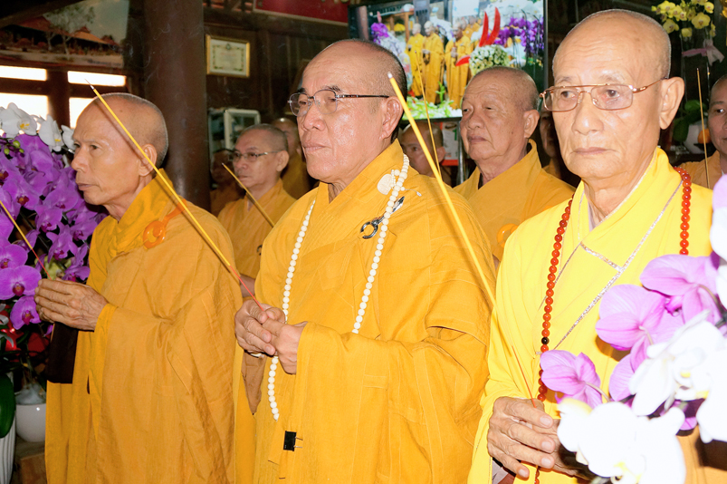 Tiếp đó, Môn đồ pháp quyến vân tập thiền đường chí tâm cung thỉnh chư Tôn Đức Giáo phẩm Ban Trị sự tỉnh, huyện, thị, thành, chư Tôn đức Tông phong v.v. thân lâm trai đường chứng dự lễ cúng dường.