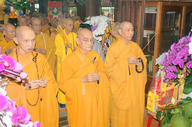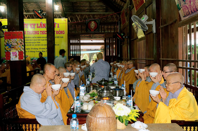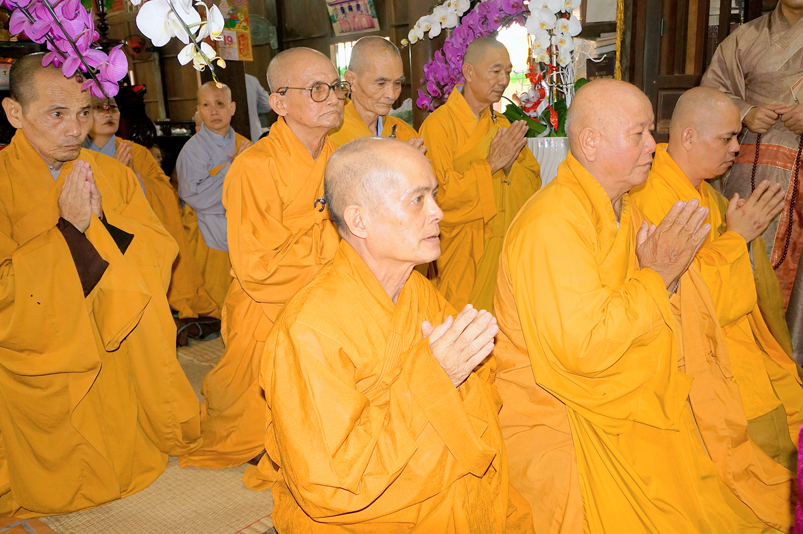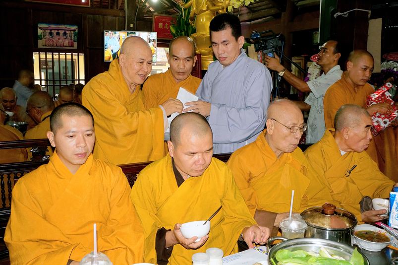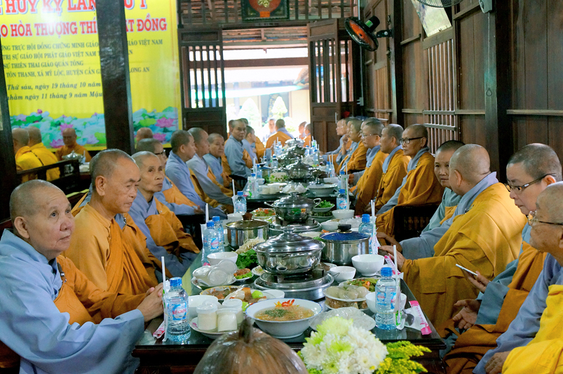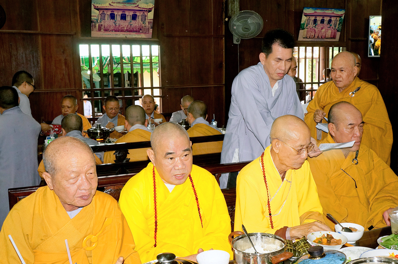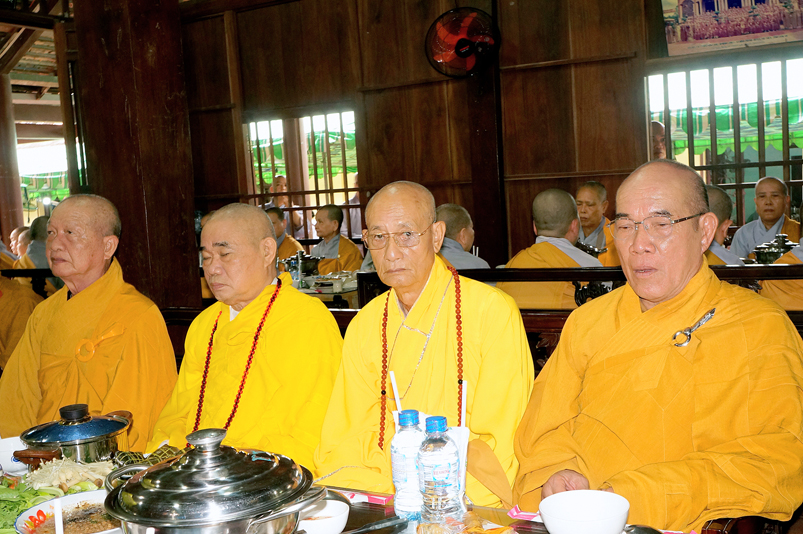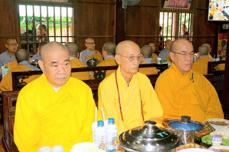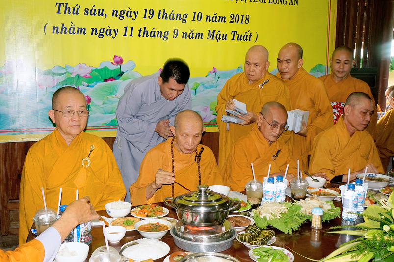 Chư Tôn đức hiện diện chứng dự trai đường: HT. Thích Giác Hạnh, HT. Thích Trí Minh, HT. Thích Thiện Huệ- Chứng minh Ban trị sự GHPGVN tỉnh Long An, HT. Thích Minh Thiện – Uỷ viên HĐTS trung ương, Phó Trưởng ban Hoằng TW, Trưởng Ban Trị sự GHPGVN tỉnh Long An; chư Tôn đức Thường trực Ban Trị sự Phật giáo tỉnh Long An; chư Tôn đức các Ban Trị sự huyện v.v. và quý Tôn đức Tông phong; quý quan khách chính quyền tỉnh, huyện, thị v.v..