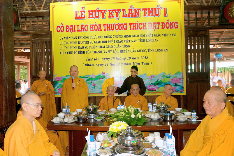 Sáng nay, ngày 19 tháng 10 năm 2018 (ngày 11 tháng 9 năm Mậu Tuất), Tổ đình Tôn Thạnh tổ chức trọng thể Lễ Húy kị lần thứ nhất của Cố Trưởng lão Hòa thượng thượng Đạt hạ Đồng (1923-2015)- Nguyên Ủy viên Ban Thường trực Hội Đồng Chứng Minh Giáo hội Phật giáo Việt Nam, Chứng minh Ban Trị sự Giáo hội Phật giáo Việt Nam tỉnh Long An,Chứng minh Đạo sư Thiên Thai Giáo Quán Tông, Nguyên Ủy viên Tăng sự Ban Trị sự Giáo hội Thiên Thai Giáo Quán Tông.