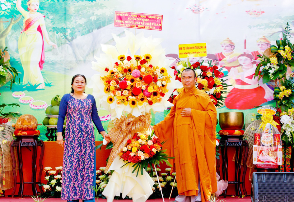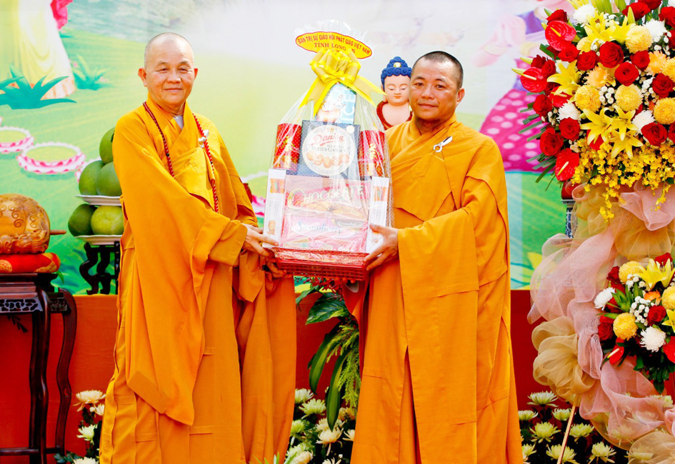 Ban tổ chức đã đón nhận nhiều lẳng hoa, phần quà của Ban Trị sự GHPGVN tỉnh và của HĐNH, UBND, UBMTTQVN huyện Cần Giuộc, và quý ban ngành sở tại.