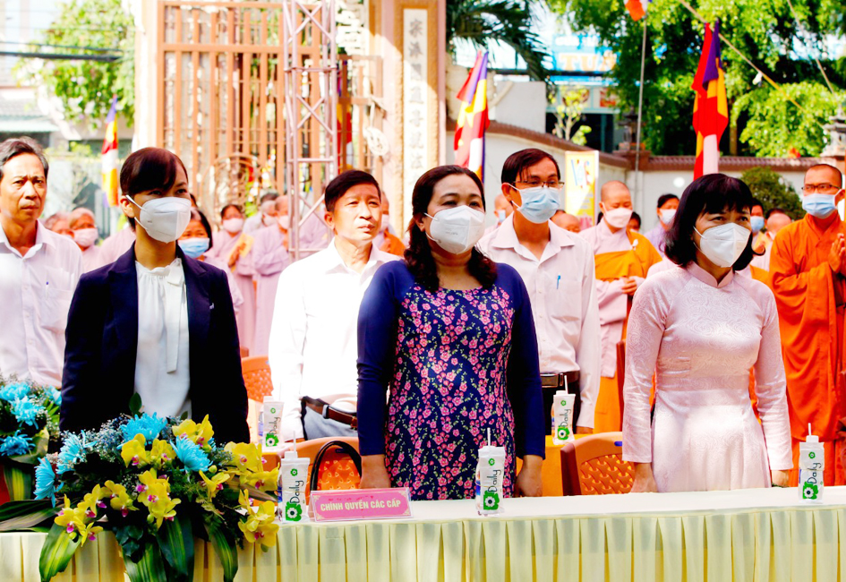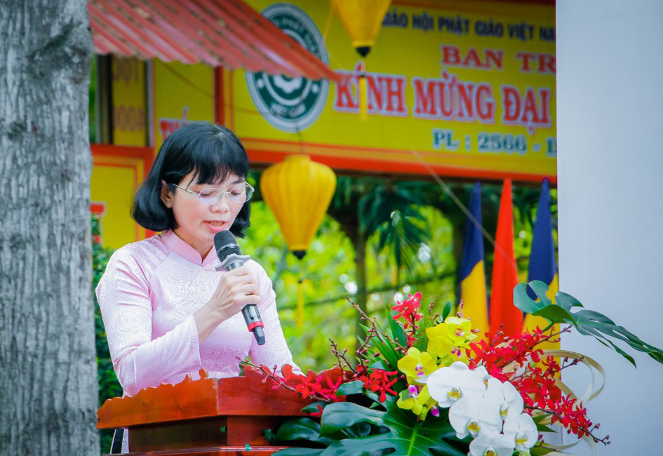 Phát biểu tại buổi lễ, Bà Đào Thị Ngọc Vui – Phó Chủ tịch UBND huyện Cần Giuộc đã khẳng định sự đồng hành của Phật giáo Việt Nam trong hơn 2.000 năm dựng nước và giữ nước; ghi nhận và đánh giá cao sự đóng góp tích cực của Phật giáo trong sự nghiệp đổi mới và phát triển của quê hương.