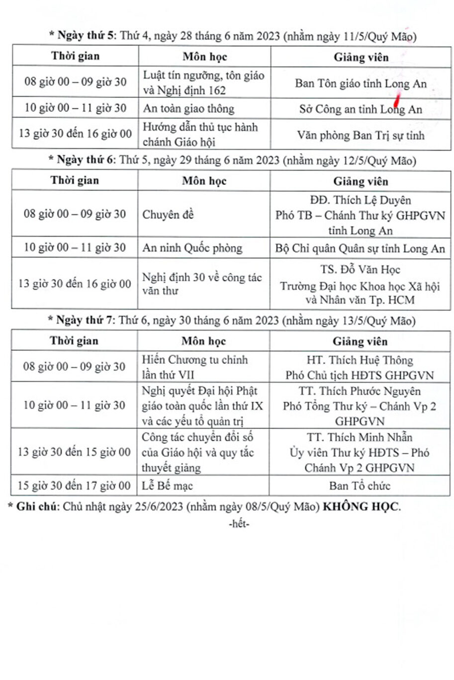 Ban Thường trực Ban Trị sự GHPGVN tỉnh Long An kính thông báo đến Chư tôn đức tham dự Khóa Bồi dưỡng Trụ trì – Hành chánh Giáo hội năm 2023 như sau: