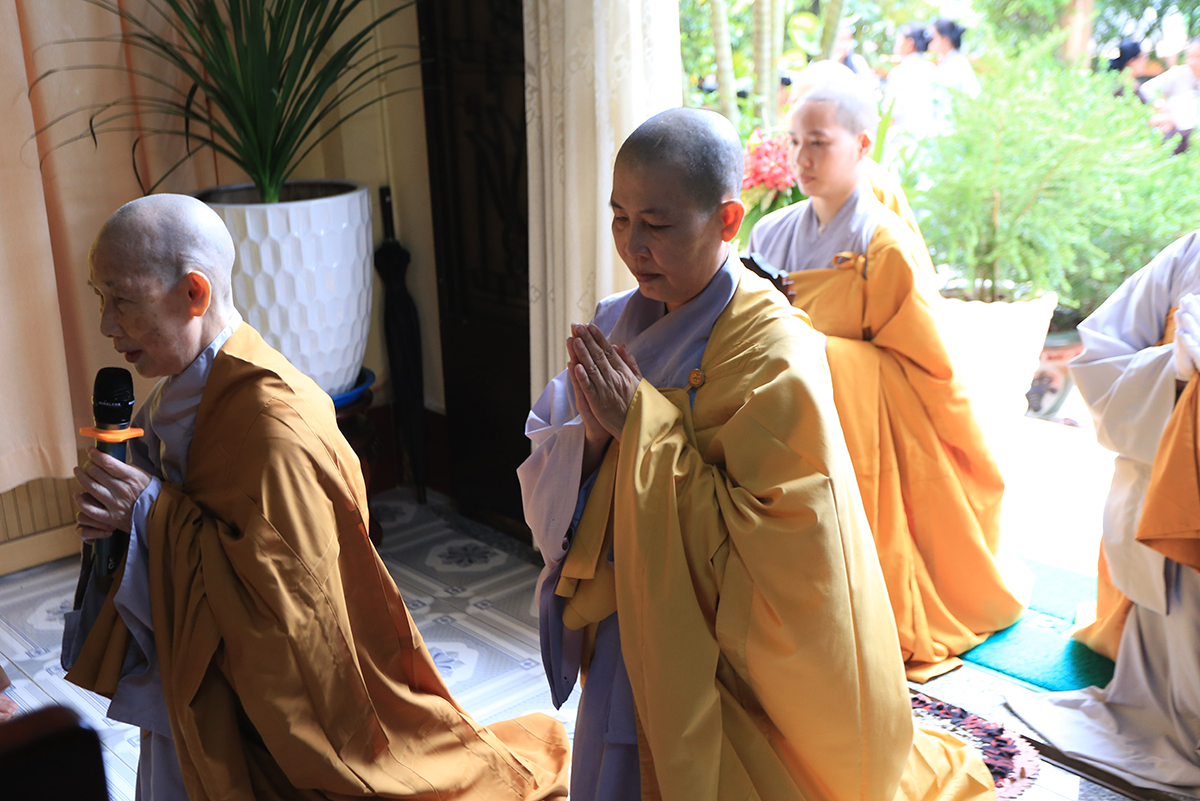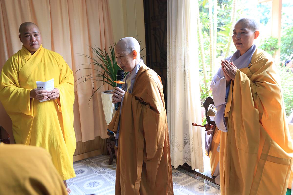 Đáp lại tấm lòng tri ân, hiếu kính của môn hạ tứ chúng đệ tử, Hòa thượng Thích Minh Thiện chân tình kính niệm ân Giác linh Ni trưởng thuở sinh thời và có lời sách tấn. Hòa thượng trân trọng tán thán tất cả công đức của Cố Ni trưởng đã gầy dựng tại mảnh đất Khánh Hậu từ việc xây dựng Tam Bảo cho đến phát đại tâm đồng hành cùng Ban Trị sự tỉnh nhà mở trường Phật học, làm nơi lưu trú cho chúng ni khắp xa gần. Bảy khóa học thành tựu viên mãn với hàng trăm Ni chúng, hiện tại đều là nhân sự có đầy đủ đạo hạnh tham gia phụng sự các Phật sự tỉnh Long An và các tỉnh thành trên mọi miền đất nước Việt Nam. Ni trưởng là bậc Ni lưu xứng danh Pháp tử tiếp bước Đại Ái Đạo Ni kiến lập đạo tràng, khai minh tuệ nghiệp, báo Phật ân đức.