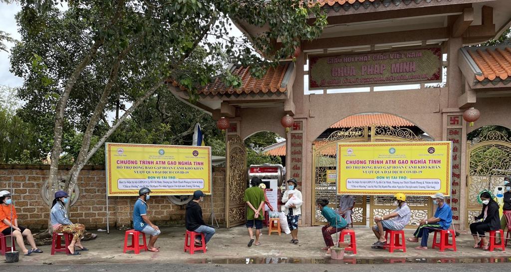 Chương trình ATM gạo nghĩa tình tại chùa Pháp Minh với mong muốn san sẻ bớt phần nào khó khăn của đồng bào bị ảnh hưởng bởi đại dịch Covid-19.