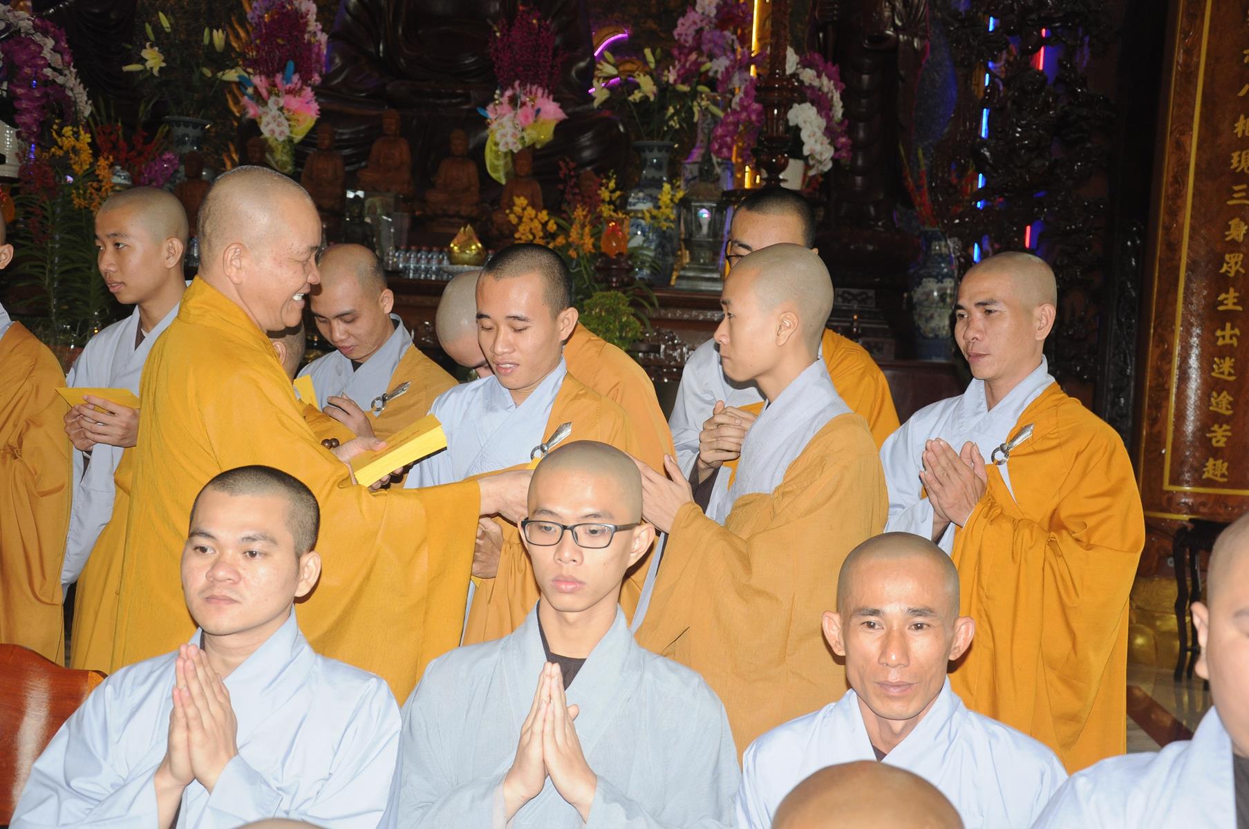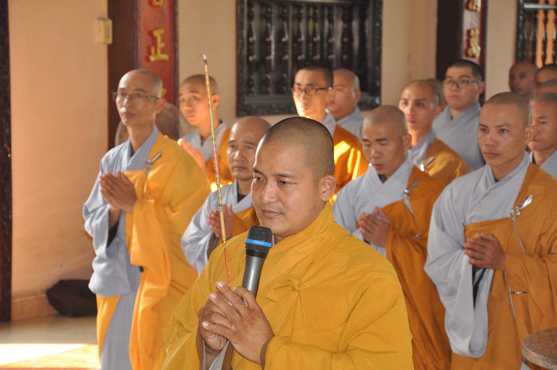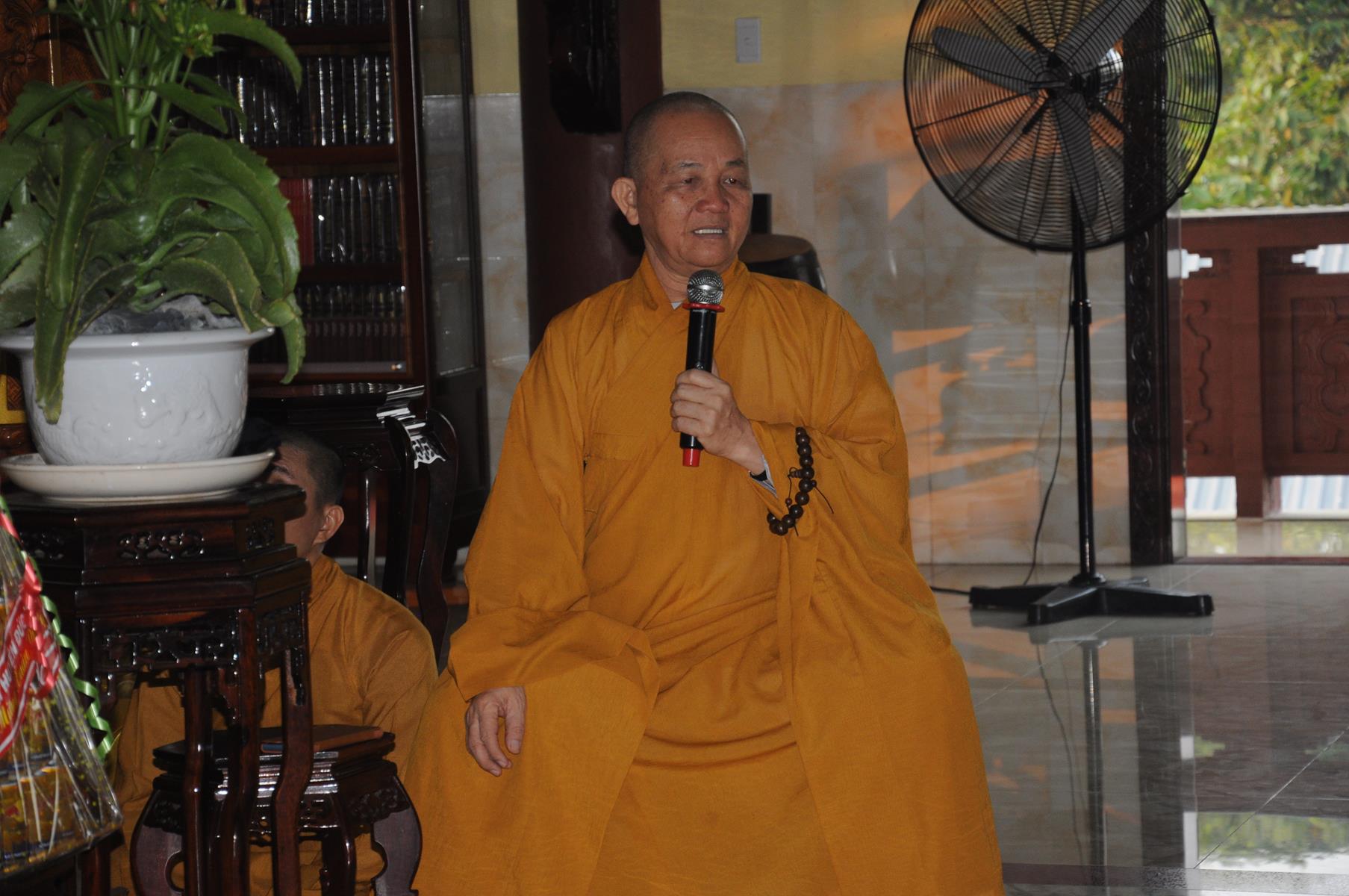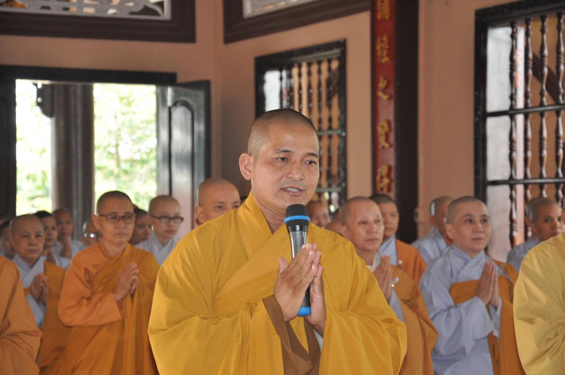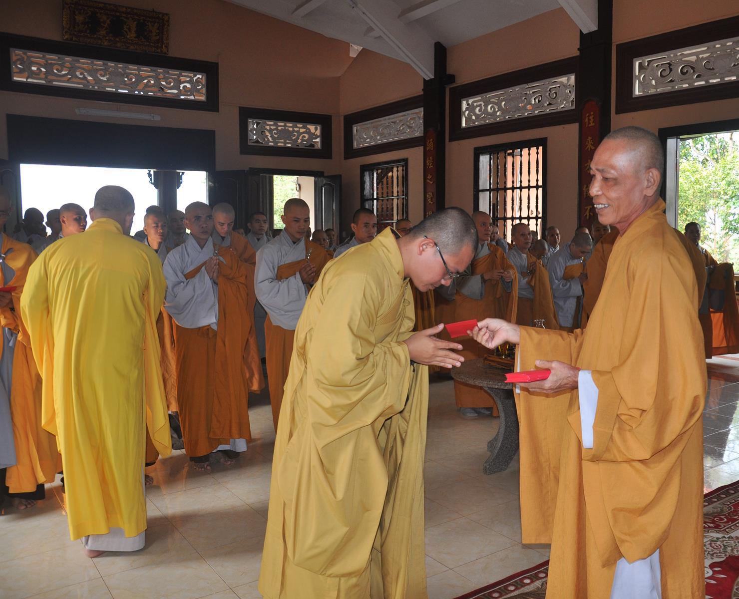 Mở đầu cho lời huấn thị, Hòa Thượng Hiệu Trưởng Ân sư nhắc Tăng Ni về nguồn cội, về văn hóa truyền thống tốt đẹp của ngày tết cổ truyền, về những mộc mạc chân phương dễ thương đến không thể nào bỏ được “Mùng một tết giận hờn gì cũng bỏ qua hết, chỉ dành những câu chúc với những lời tốt đẹp nhất cho nhau thôi” giản đơn vậy mà đẹp khiến mỗi người chúng ta khi nghĩ đến ngày tết đã thấy vui rồi. Hòa Thượng quan tâm đến đời sống tu tập của chư Tăng Ni và sách tấn huynh đệ là những tu sĩ trẻ đã phát tâm dấn thân ra làm Phật sự chắc chắn sẽ gặp nhiều khó khăn, nhiều tị hiềm, nhiều chướng ngại… các con cố gắng vượt qua, đoàn kết thương nhau, nâng đỡ nhau, gánh vác, chia sẻ nhau trong mọi Phật sự chung tay xây dựng ngôi nhà Phật pháp ngày một xương minh, cho phạm vũ ngày một huy hoàng “..Tâm hình dị tục, mới thiệu long thánh chủng được..”. Hòa Thượng có lời khuyên dạy Ban chủ nhiệm cố gắng nhiều hơn nữa trong công việc quản lý, giám sát, sách tấn, động viên, khích lệ đối với Tăng Ni sinh Lớp Sơ Cấp Phật Học “tuổi còn nhỏ, hay dù đã lớn nhưng đều mới vào đạo nên các con để ý quan tâm nhiều hơn, thiết lập nền tảng nhân cách đạo đức căn bản để sau này trở thành người tu sĩ không những giỏi về tri thức mà còn đẹp về nhân cách.” Hòa Thượng răn dạy Tăng Ni sinh phải siêng tu, siêng học đền ơn Thầy tổ, mẹ cha và đàn na tín thí, và để trở thành người tu sĩ Phật giáo tốt làm tốt đạo đẹp đời.