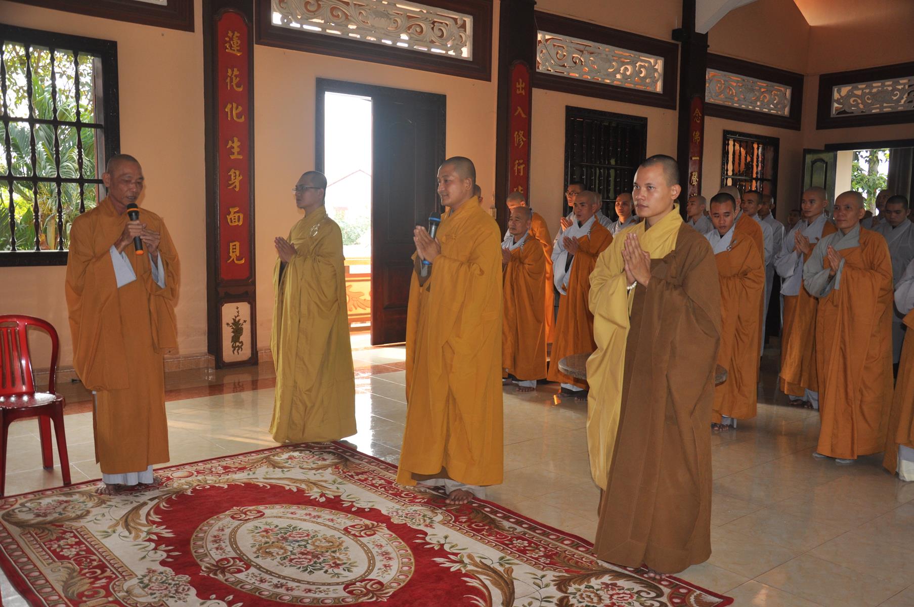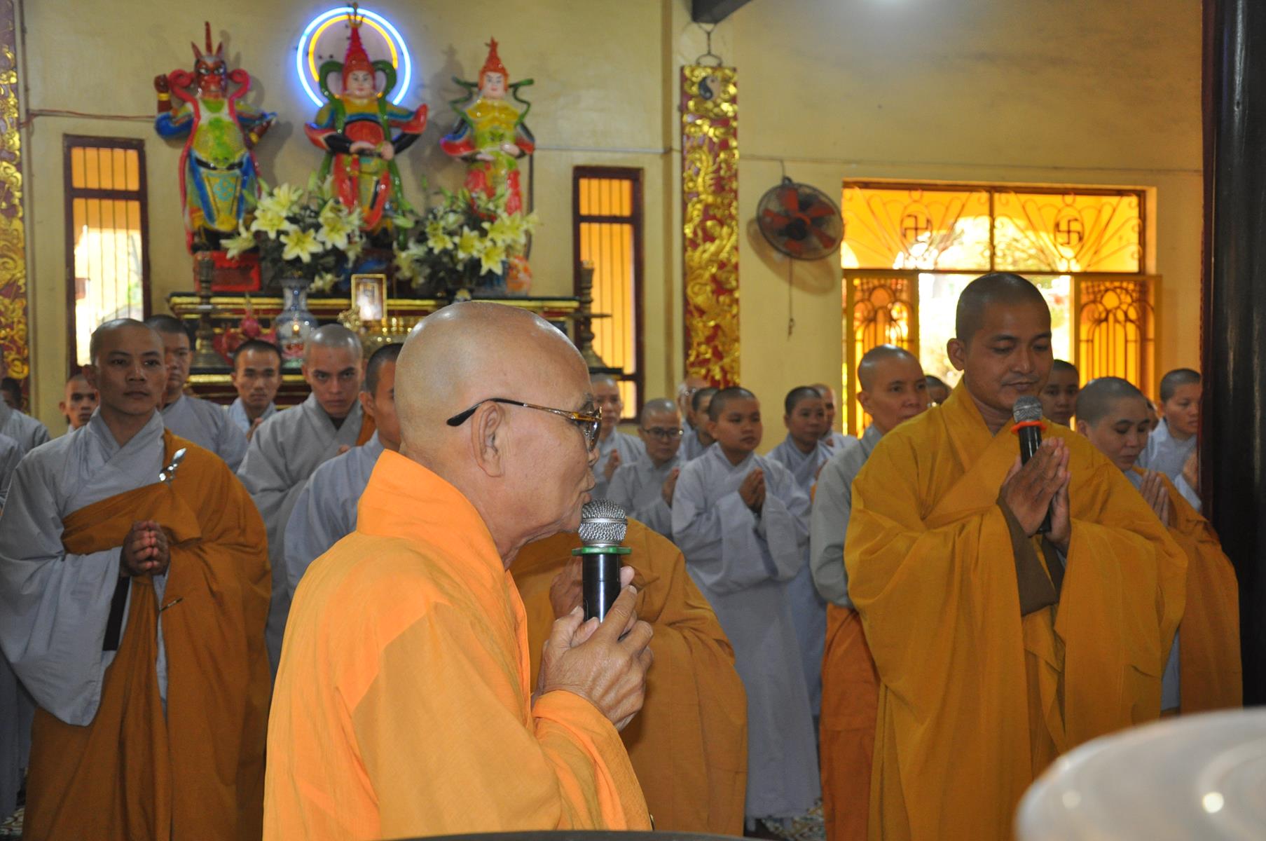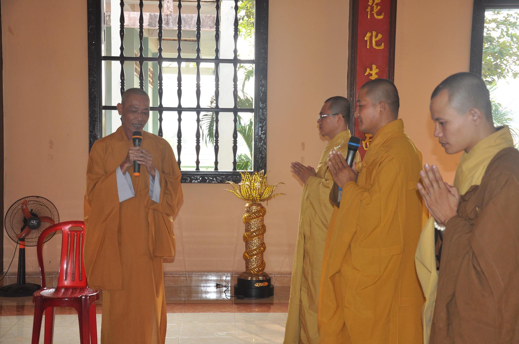Chư Tăng Ni lại tiếp tục trở về Chùa Thiên Khánh nơi sản sinh ra những bậc anh tài xuất chúng cho Giáo Hội PGVN tỉnh Long An và GHPGVN, để được cung kính đãnh lễ Hòa Thượng đạo hiệu Thích Thiện Huệ chứng minh Ban Trị Sự PGVN tỉnh Long An, Chứng Minh Trường Trung Cấp Phật Học Long An. Hòa Thượng khuyến dạy Chư Tăng Ni hãy cố gắng tu tập thực hành đúng lời Phật dạy, sống đúng chánh pháp, trở thành bậc mô phạm cho Phật pháp không phụ lòng mong đợi Chư Phật, chư vị Tổ Sư, Thầy Tổ, Cha Mẹ, tín thí, đất nước “kế vãng khai lai.” Kế thừa mạng mạch của Phật pháp, xứng đáng là Sứ giả của Như Lai.