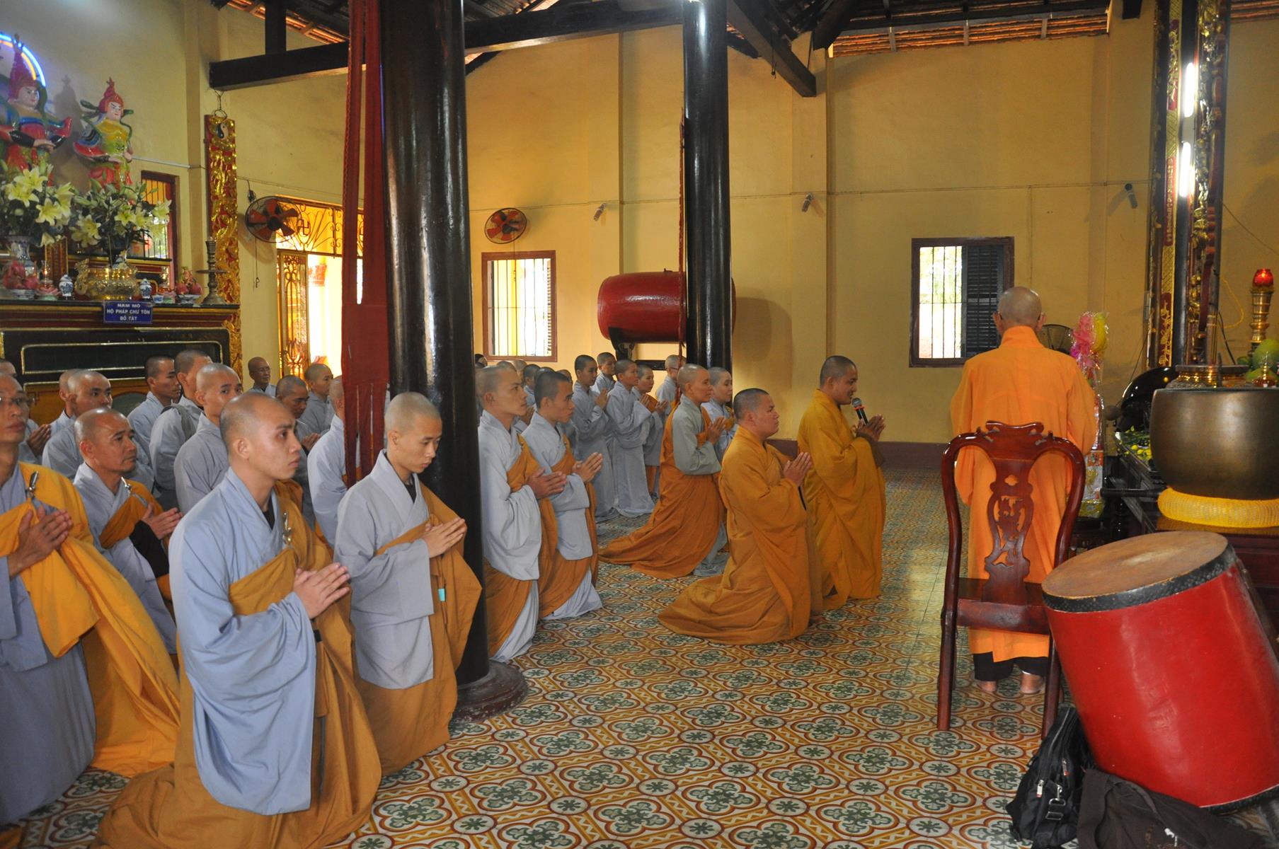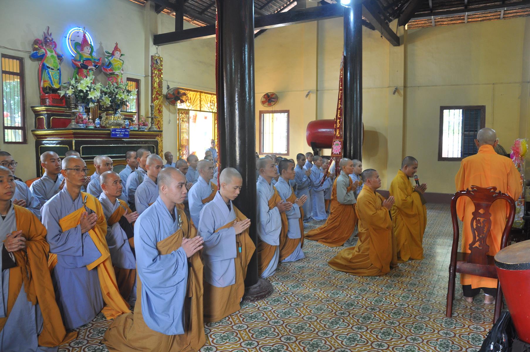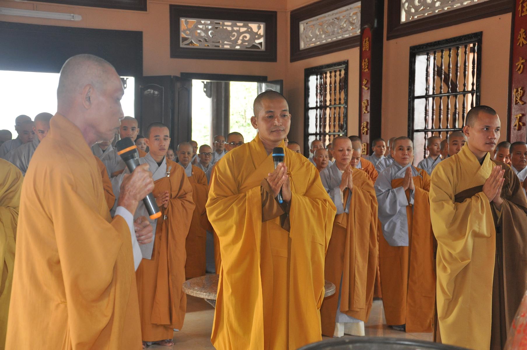 Chư Tăng Ni lại tiếp tục trở về Chùa Thiên Khánh nơi sản sinh ra những bậc anh tài xuất chúng cho Giáo Hội PGVN tỉnh Long An và GHPGVN, để được cung kính đãnh lễ Hòa Thượng đạo hiệu Thích Thiện Huệ chứng minh Ban Trị Sự PGVN tỉnh Long An, Chứng Minh Trường Trung Cấp Phật Học Long An. Hòa Thượng khuyến dạy Chư Tăng Ni hãy cố gắng tu tập thực hành đúng lời Phật dạy, sống đúng chánh pháp, trở thành bậc mô phạm cho Phật pháp không phụ lòng mong đợi Chư Phật, chư vị Tổ Sư, Thầy Tổ, Cha Mẹ, tín thí, đất nước “kế vãng khai lai.” Kế thừa mạng mạch của Phật pháp, xứng đáng là Sứ giả của Như Lai.