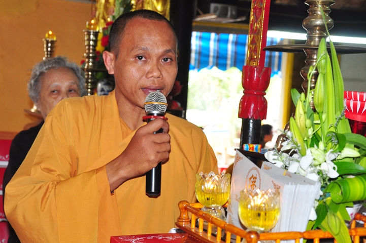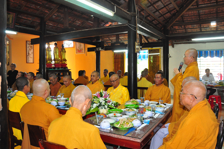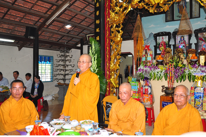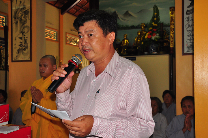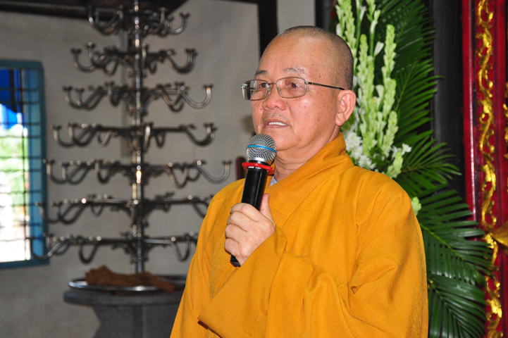 Thay mặt Thường trực BTS PG tỉnh Long An, HT. Thích Minh Thiện ban đạo từ. Hòa thượng cảm kích trước lời phát biểu đại diện chính quyền nói lên tình thần trân trọng truyền thống Phật giáo gắn liền với dân tộc. Hòa thượng hoan hỷ lời phát nguyện nhận nhiệm vụ của Đại đức tân trụ trì đã nói lên lòng cung kính tuân thủ theo sự lãnh đạo Giáo hội, không quên ơn đào tạo của Giáo hội, không quên ơn Chính Quyền đã tạo điều kiện và ơn ngoại hộ Phật tử của Đại đức Tân trụ trì.