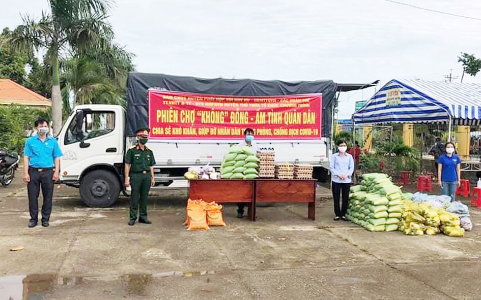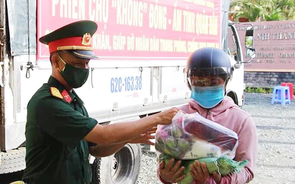 Được biết, tổ chức Phiên chợ “Không” đồng – Ấm tình Quân Dân lưu động đến địa bàn các xã gặp khó khăn để trực tiếp hỗ trợ 400 phần quà gồm: nhu yếu phẩm, gạo, trứng nước tương, nước mắm, đường, bột ngọt, rau, củ, quả… cho Nhân dân trong các ấp, khu phố, khu dân cư, nhà trọ, các khu vực phong tỏa, công nhân… gặp khó khăn do dịch Covid-19. Địa điểm tổ chức Phiên chợ “Không” đồng và số lượng quà tại Trụ sở UBND xã Nhị Thành, 200 phần quà; Khu vực phong tỏa (ấp 1, 2) xã Mỹ Thạnh, 100 phần quà; Trụ sở UBND xã Mỹ Lạc 100 phần quà.
