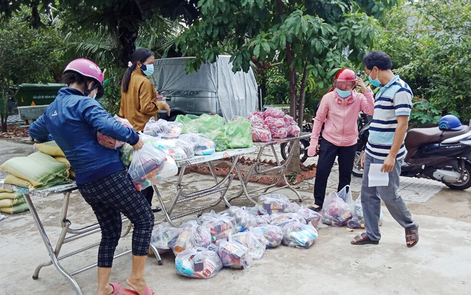 Nhằm phối hợp vận động các Mạnh Thường Quân trao tặng các nhu yếu phẩm, lương thực, thực phẩm sinh hoạt hàng ngày hỗ trợ giúp cho nhân dân vượt qua khó khăn trong thời gian phòng chống dịch Covid-19, giúp đỡ nhân dân địa phương ổn định đời sống. Sáng ngày 30/07/2021(21/06/ Tân Sửu) Ban Trị sự Giáo hội