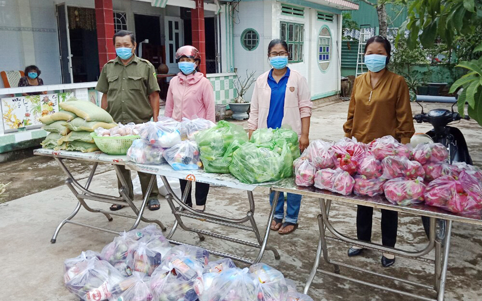 Ban Dân vận, các ban, ngành đoàn thể ( Ban CHQS huyện – Ban Dân vận – Mặt trận Tổ quốc Việt Nam – Hội Phụ nữ – Huyện đoàn – Hội Nông dân – Liên đoàn Lao động – Trung tâm VHTT&TT) thực hiện Chương trình Phiên chợ” Không” đồng – Ấm tình Quân Dân hỗ trợ nhân dân khó khăn vượt qua dịch Covid-19.