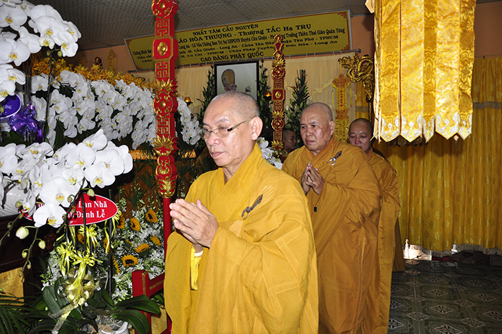 Phái đoàn gồm có HT. Thích Minh Thiện- UVHĐTSTƯ, Phó Ban Hoằng Pháp trung ương, Trưởng Ban trị sự GHPGVN tỉnh Long An( làm trưởng đoàn); HT. Thích Thiện Huệ- Chứng minh Ban trị sự GHPGVN tỉnh Long An; HT. Thích Thiện Tâm- Phó BTS kiêm Trưởng Ban kiểm Soát GHPGVN tỉnh Long An; TT. Thích Minh Thọ- UVHĐTSTƯ, Phó thường trực BTS GHPGVN tỉnh Long An; TT. Thích Quảng Tâm- Phó Ban trị sự kiêm trưởng Ban từ thiện xã hội BTS. GHPGVN tỉnh Long An cùng Chư tôn đức Tăng Ni trong thường trực BTS tỉnh và Chư tôn đức Ban trị sự GHPGVN huyện Cần Giuộc.
