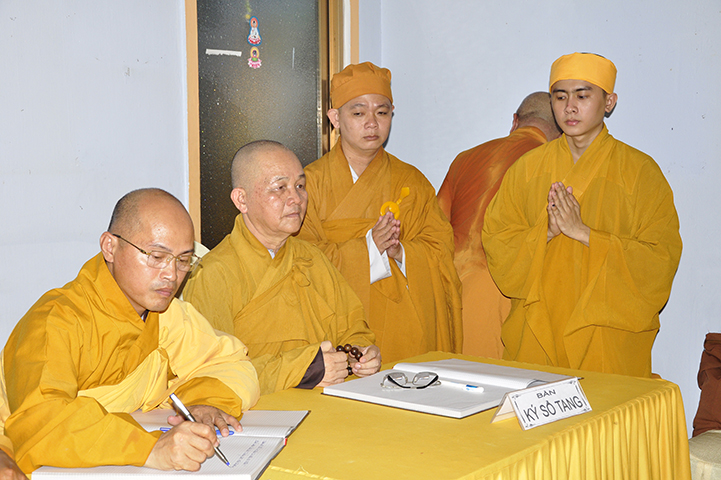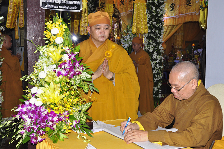 Sau đó, chư Tôn đức hữu nhiễu kim quan và ghi vào sổ tang lưu niệm.