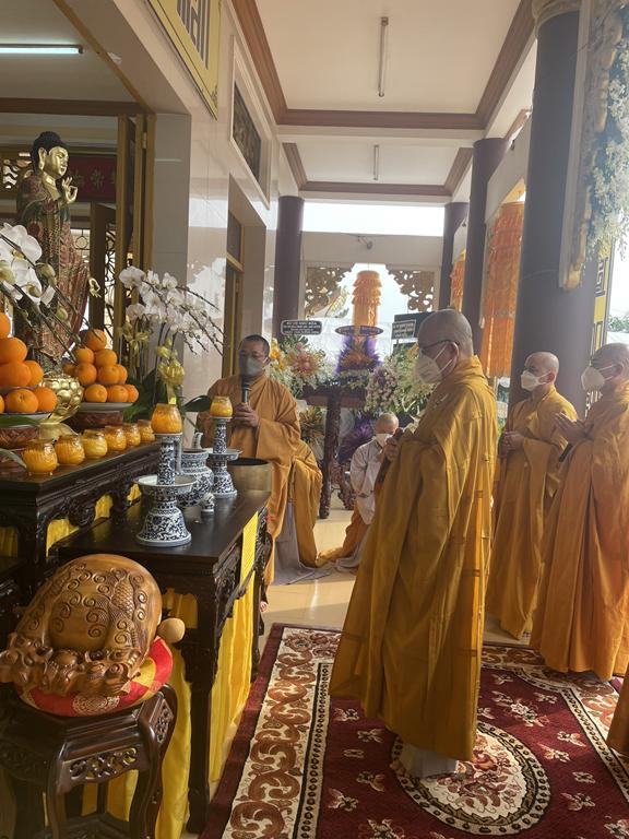 Ngày 02 tháng 12 năm 2021 (nhằm ngày 28 tháng 10 năm Tân Sửu), vào lúc 14g30, Ban tổ chức Tang lễ và môn phong pháp quyến đạo tràng Vĩnh Long trang trọng cung nghinh phái đoàn chư Tôn đức Giáo phẩm Ban Trị sự GHPGVN tỉnh Long An và Ban Trị sự GHPGVN huyện, thị xã, thành phố viếng tang lễ Ni trưởng Thích Nữ Tắc Nhụy.