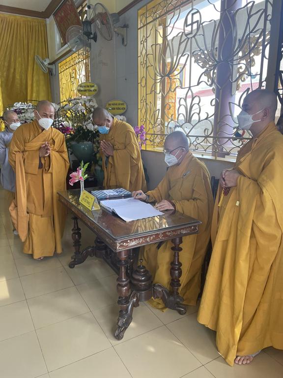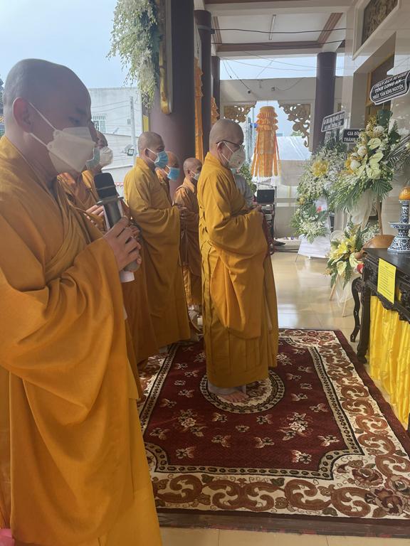 Thành phần chư Tôn đức trong phái đoàn quang lâm viếng tang lễ: Hòa thượng Thích Minh Thiện, Ủy viên Hội đồng Trị sự, Phó Trưởng ban Trị sự GHPGVN tỉnh Long An làm Trưởng đoàn, Đại đức Thích Lệ Duyên, Chánh Thư ký Ban Trị sự GHPGVN tỉnh, Trưởng ban Trị sự GHPGVN huyện Đức Hòa; Đại đức Thích Lệ Ngôn, Trưởng ban Hoằng pháp GHPGVN tỉnh, Trưởng ban Trị sự GHPGVN huyện Thạnh Hóa, cùng Chư Tôn đức các phái đoàn: