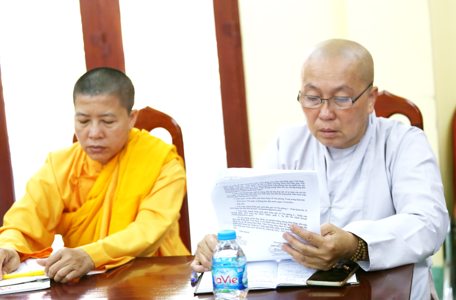 Đúc kết phiên họp, Hòa thượng Thích Minh Thiện ghi nhận và tán thán những thành tựu Phật sự của các ban ngành trực thuộc, các đơn vị Phật giáo huyện, thị xã, thành phố trong tháng vừa qua. Hòa thượng kêu gọi Tăng Ni tỉnh nhà tham gia viết tham luận cho Đại hội Đại biểu Phật giáo toàn quốc, Hòa thượng nhắc nhở Tăng Ni cần lưu tâm, theo sát các chủ đề mà ban tổ chức đề ra để viết bài, trong đó cần xây dựng đoàn kết tôn giáo, tránh xung đột sắc tộc tôn giáo. Hòa thượng đã có những giải trình đối với từng chư Tôn đức được giới thiệu tham gia vào Hội đồng Chứng minh, Hội đồng Trị sự trong nhiệm kỳ IX của TƯ Giáo hội. Cuối cùng, Hòa thượng góp ý, đề xuất phương hương hoạt động Phật sự của các ban ngành trực thuộc.