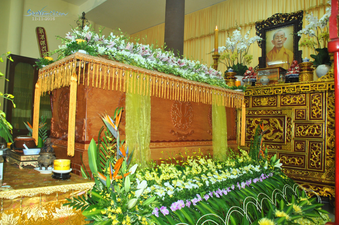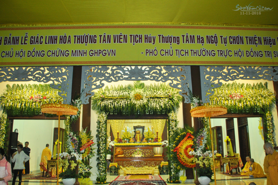 Vào lúc 19giờ này 11/11/2016 (12/10/Bính Thân), Phái đoàn Phật giáo tỉnh Long An kính viếng Giác linh Hoà thượng Thích Chơn Thiện tại Tổđình Tường Vân, TP Huế.