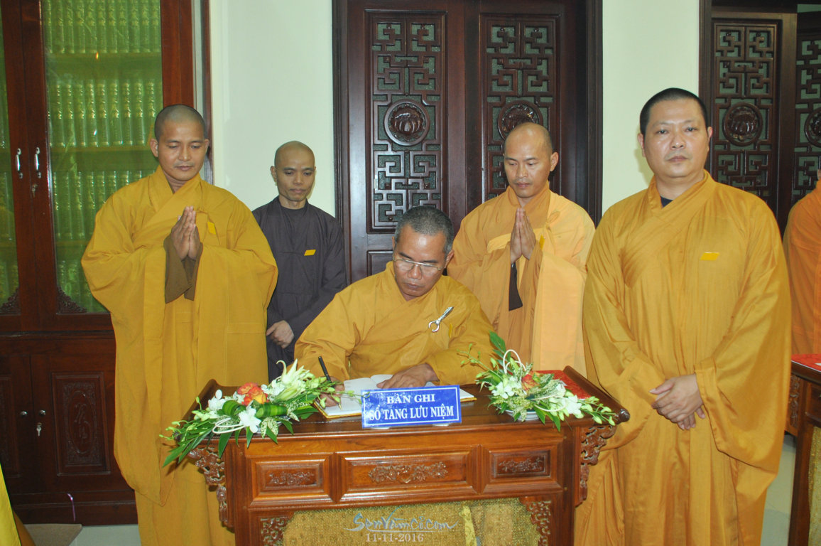 Thượng toạ Thích Minh Thọ đại diện Ban Trị sự GHPGVN tỉnh Long An và Ban Giám Hiệu Trường Trung cấp Phật học Long An ký sổ tang lưu niệm, tỏ lòng thành kính tri ân Giác linh Hoà thượng Phó Pháp chủ. Nhiều thế hệ Tăng Ni trẻ Long An đã được duyên lành thụ huấn lời giảng dạy của Ngài tại Học viện Phật giáo Việt Nam TP HCM, chương trình Phật học của Ban Giáo dục Tăng Ni Trung ương GHPGVN mà Ngài làm trưởng ban. Xin nguyện noi gương lành của Hoà thượng nhất tâm phụng sựĐạo pháp và dân tộc.