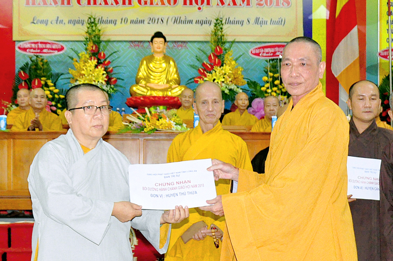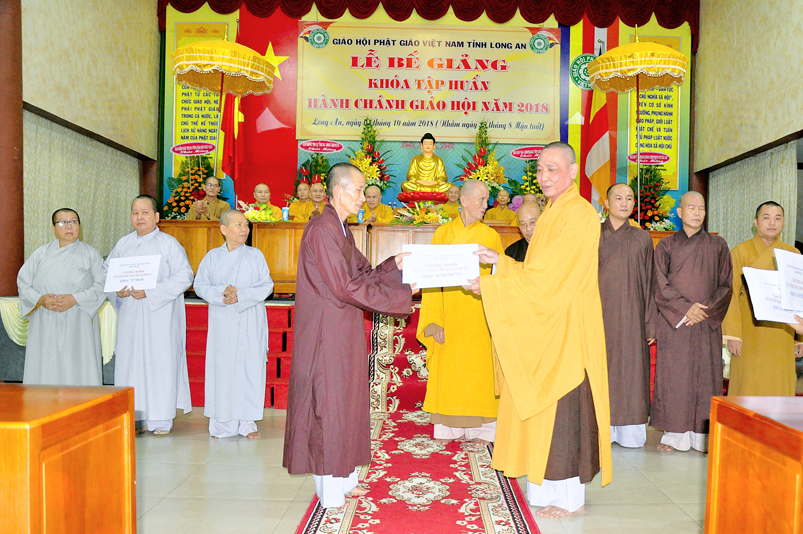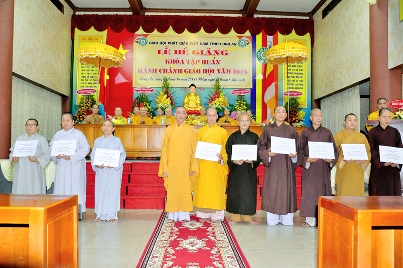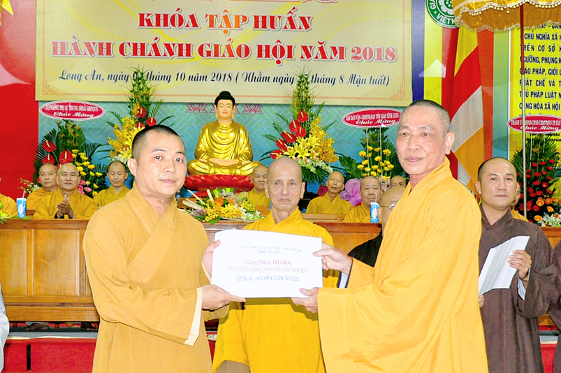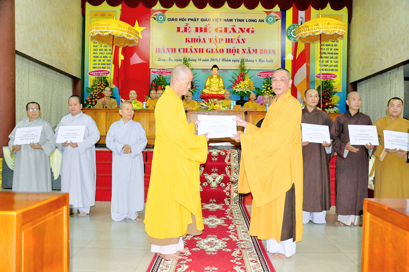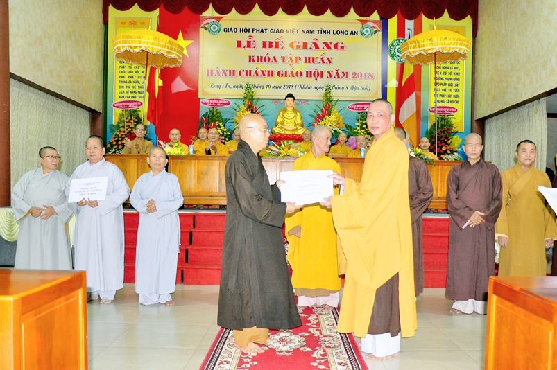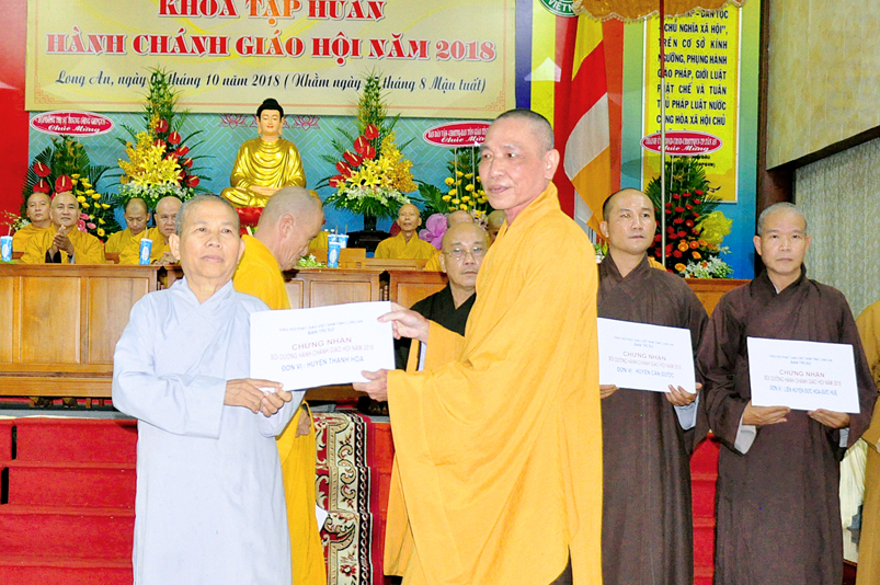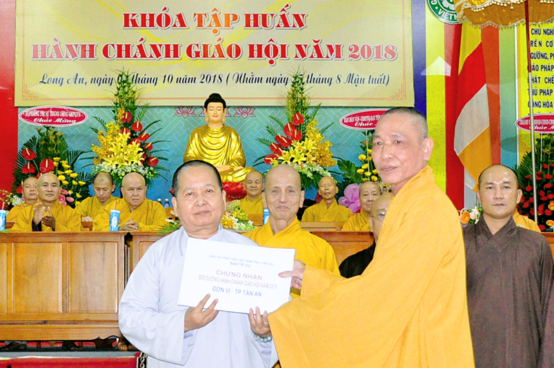 Chiều ngày 4 tháng 10 năm 2018 (24/8/Mậu Tuất), Ban Trị sự GHPGVN tỉnh Long An long trọng tổ chức Lễ bế mạc Khóa tập huấn Hành chánh Giáo hội năm 2018.