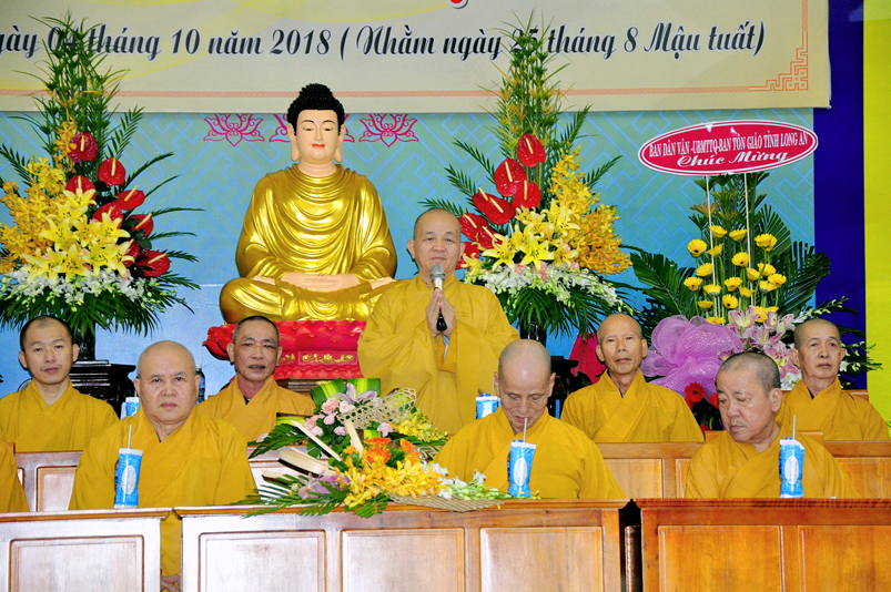 Đặc biệt, buổi lễ được lắng nghe lời đạo từ chỉ đạo chân tình của HT. Thích Thiện Nhơn. Hòa Thượng ghi nhận thành tựu Phật sự của BTS. GHPGVN tỉnh Long An nhiệm kỳ IX (2017-2022). Trong khoảng thời gian ngắn ngủi chỉ một năm, nhưng với tinh thần Đoàn kết-Hòa hợp và quyết tâm, toàn thể Chư Tôn đức và tín đồ Phật tử, Ban Trị sự Phật giáo Long An đã thành tựu viên mãn các công tác Phật sự năm 2018, điển hình như: tổ chức ra mắt và bổ nhiệm các ban chuyên ngành trực thuộc Ban Trị sự GHPGVN tỉnh Long An, củng cố các Ban Trị sự huyện, thị và thành phố; tổ chức thành công Đại Giới đàn Hoằng Đức, Đại lễ Phật đản PL. 2562 và 10 trú xứ An cư kiết hạ.