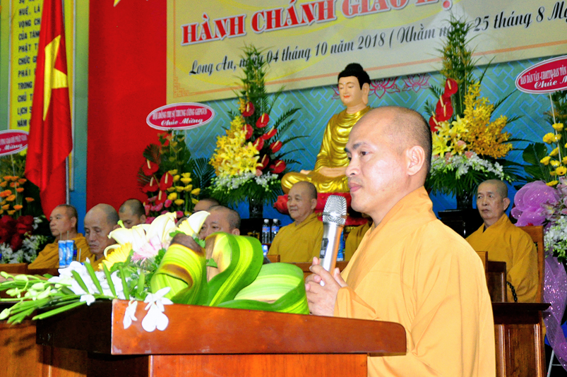 Thay mặt Ban Tổ chức, HT. Thích Minh Thiện đã phát biểu khai mạc. Hòa thượng nhấn mạnh tầm quan trọng của việc mở Khóa tập huấn hành chánh Giáo hội năm 2018 trong thời kỳ hội nhập và phát triển của đất nước. Tiếp theo Thượng tọa Thích Quảng Tâm báo cáo khái quát công tác tổ chức khóa tập huấn. Tại lễ khai giảng, ông Nguyễn Văn Mưng-Phó Trưởng ban Tôn giáo tỉnh Long An thay mặt lãnh đạo chánh quyền tỉnh Long An phát biểu.