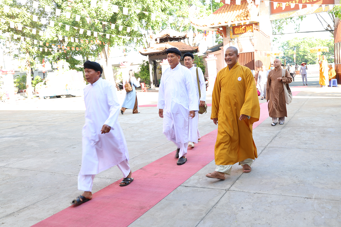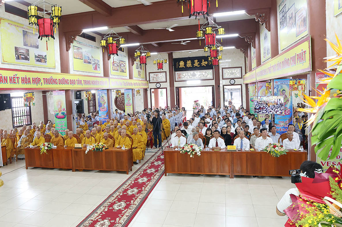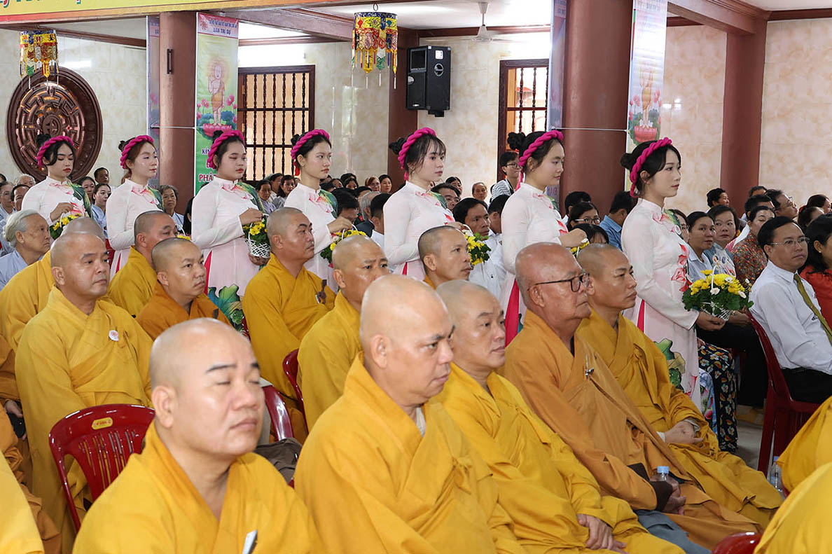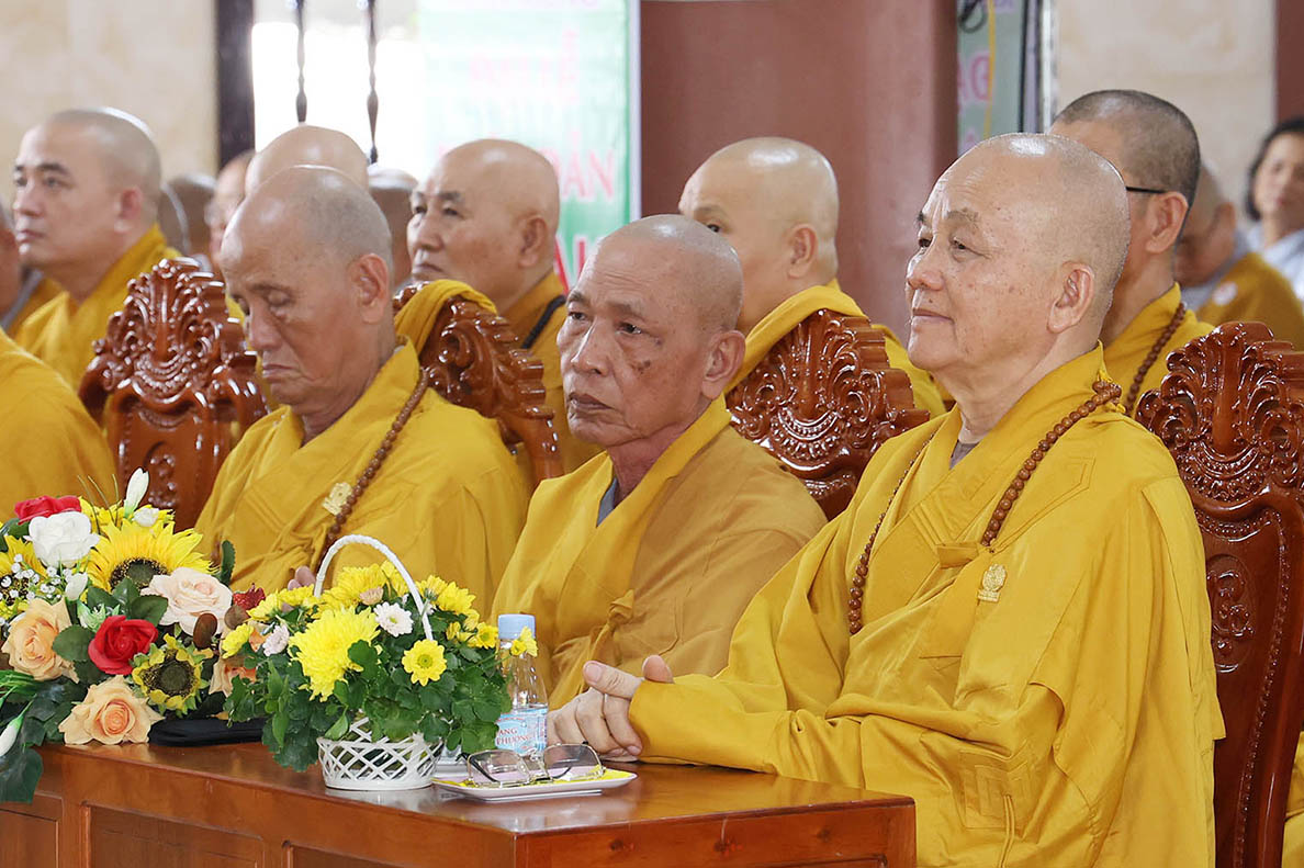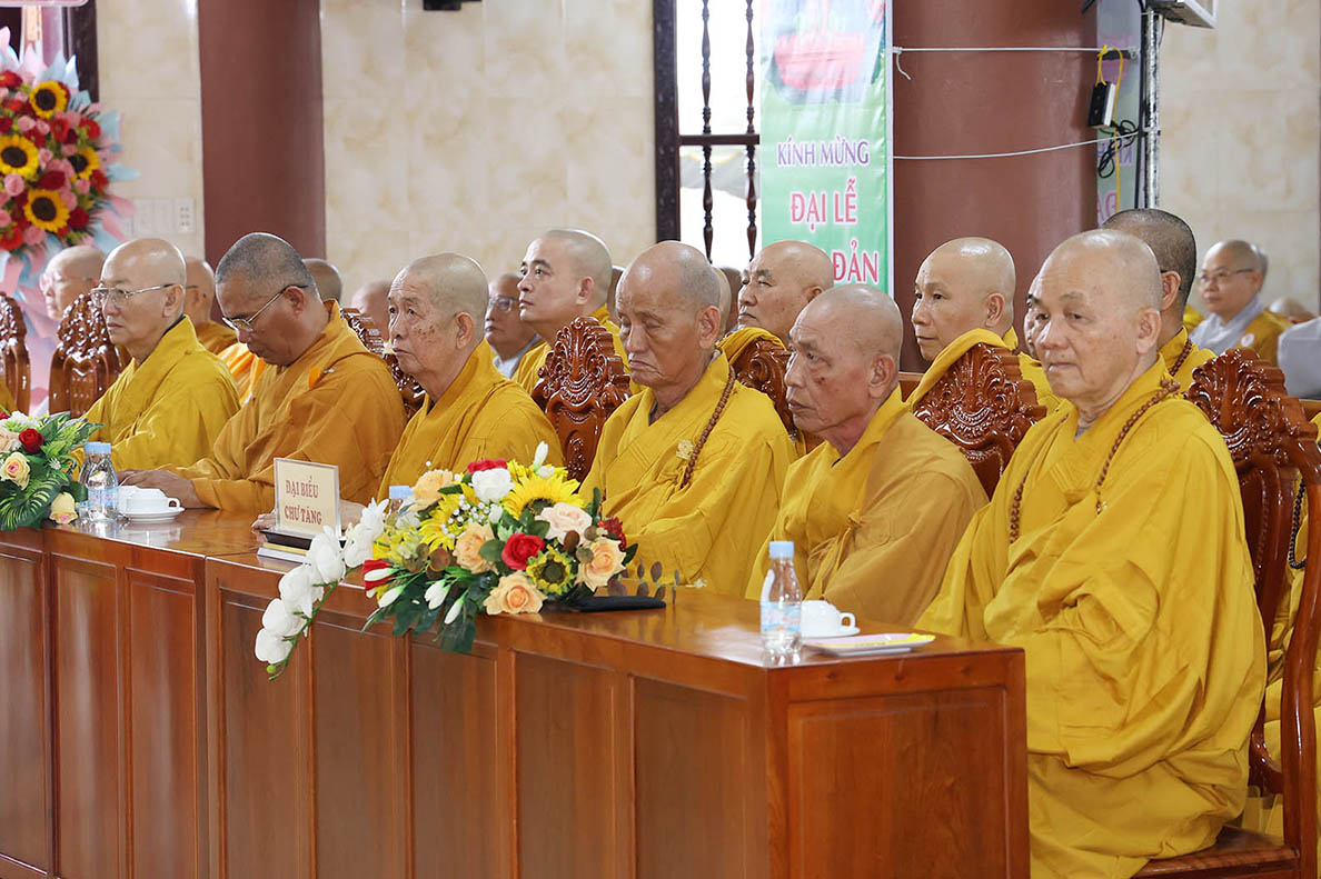 Quang lâm chứng minh và tham dự buổi lễ có Trưởng lão Hòa thượng Thích Thiện Huệ – Thành viên Hội đồng Chứng minh, Chứng minh BTS GHPGVN tỉnh Long An; HT. Thích Thiện Tài; HT. Thích Quảng Ý – Chứng minh BTS; HT. Thích Minh Thiện – Ủy viên HĐTS, Phó Trưởng ban Hoằng pháp Trung ương, Trưởng BTS GHPGVN tỉnh Long An, Trưởng Ban Tổ chức Đại lễ. Cùng hiện diện còn có chư Tôn đức Thường trực BTS, đại diện 13 Ban Trị sự huyện, thị xã, thành phố và hơn 320 cơ sở tự viện trong toàn tỉnh.