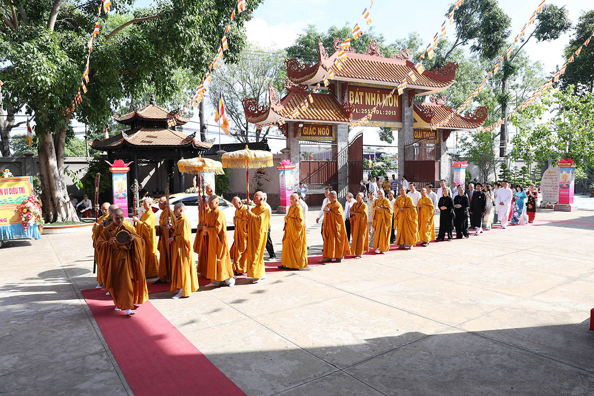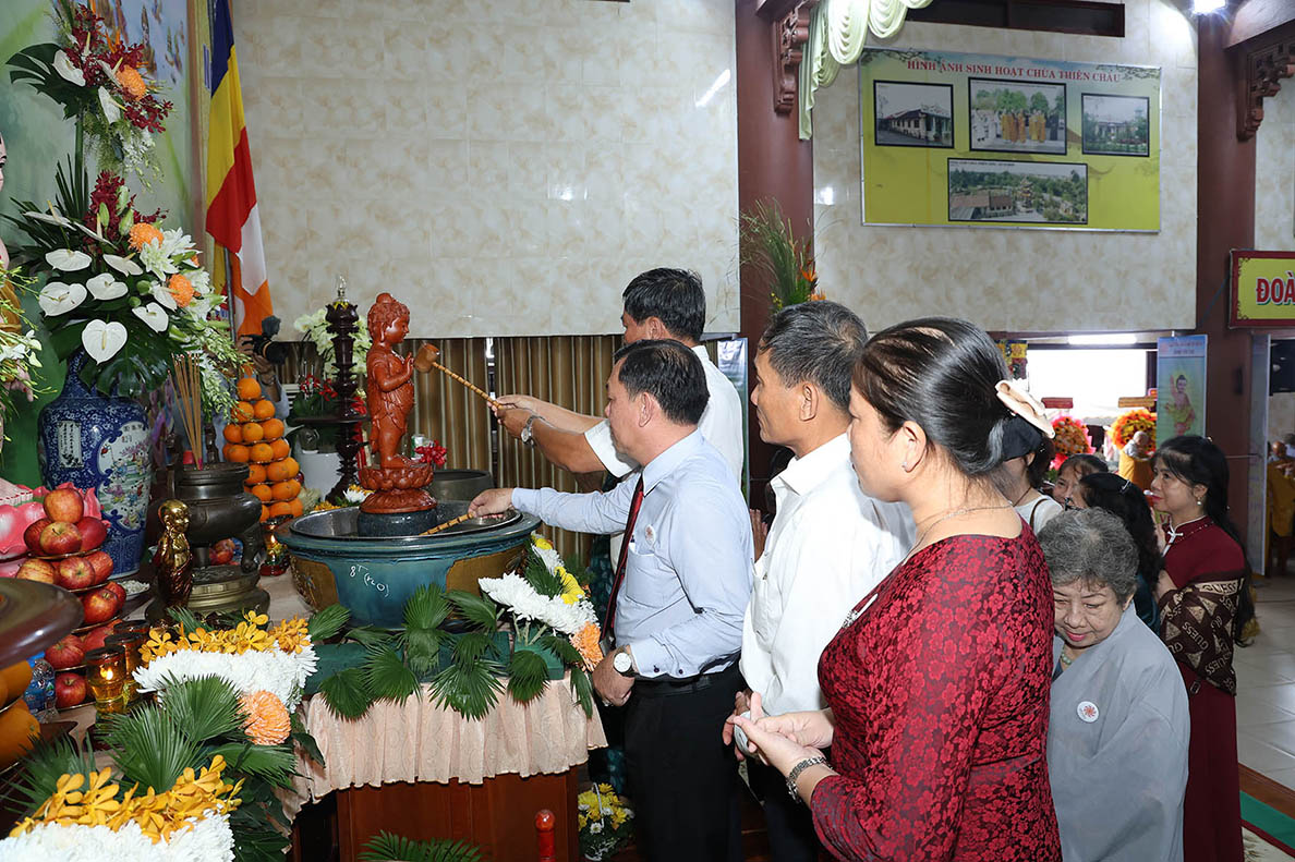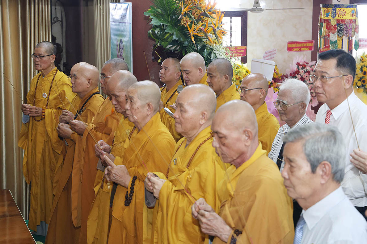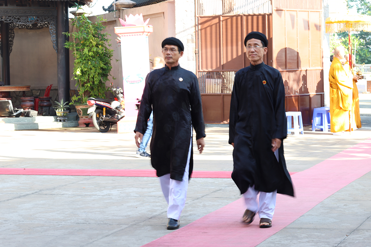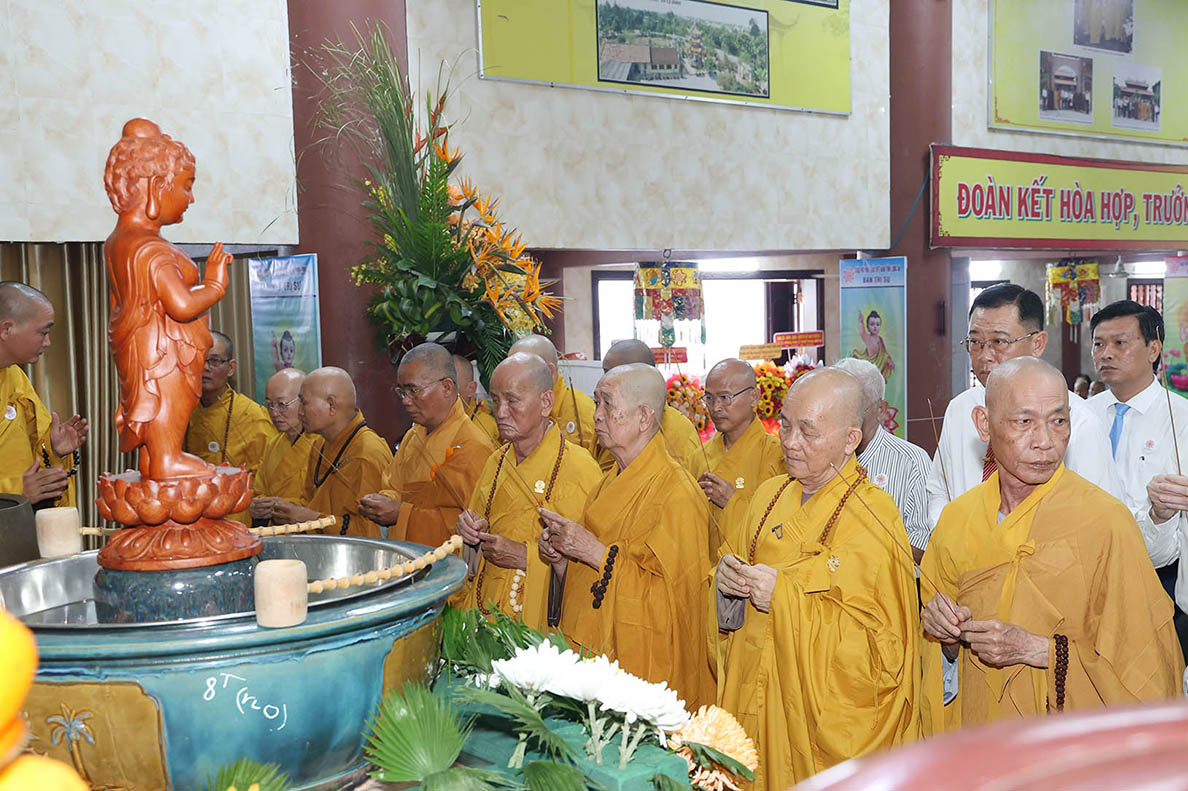 Quang lâm chứng minh và tham dự buổi lễ có Trưởng lão Hòa thượng Thích Thiện Huệ – Thành viên Hội đồng Chứng minh, Chứng minh BTS GHPGVN tỉnh Long An; HT. Thích Thiện Tài; HT. Thích Quảng Ý – Chứng minh BTS; HT. Thích Minh Thiện – Ủy viên HĐTS, Phó Trưởng ban Hoằng pháp Trung ương, Trưởng BTS GHPGVN tỉnh Long An, Trưởng Ban Tổ chức Đại lễ. Cùng hiện diện còn có chư Tôn đức Thường trực BTS, đại diện 13 Ban Trị sự huyện, thị xã, thành phố và hơn 320 cơ sở tự viện trong toàn tỉnh.