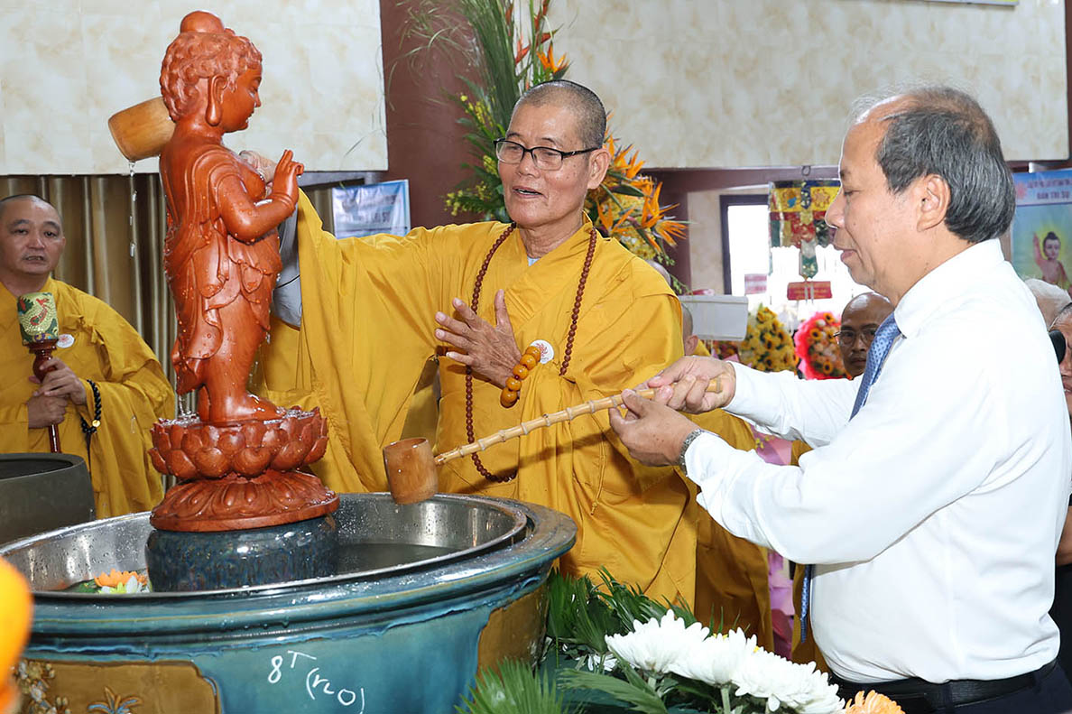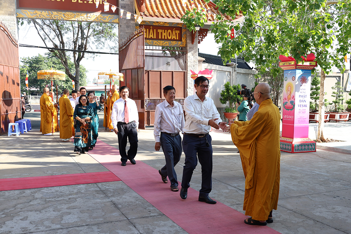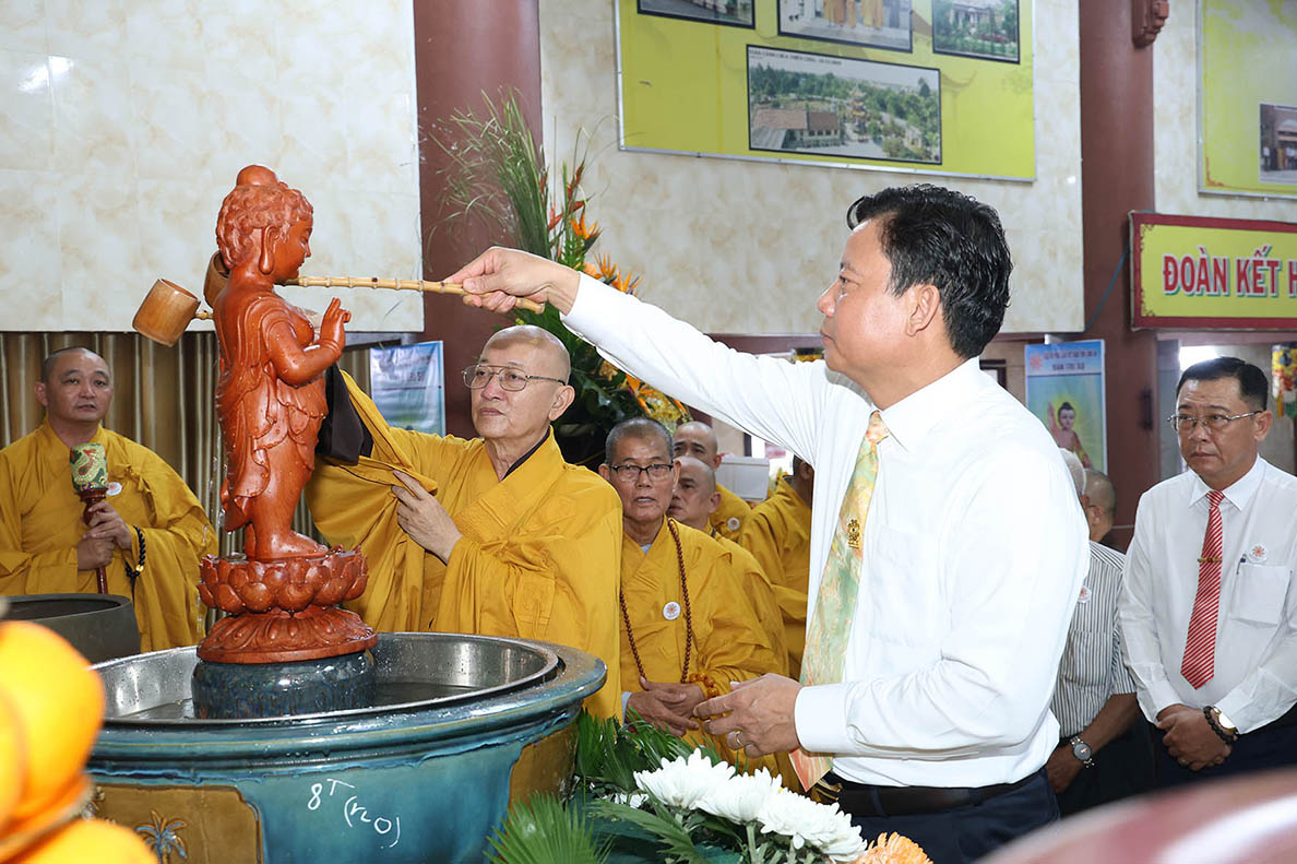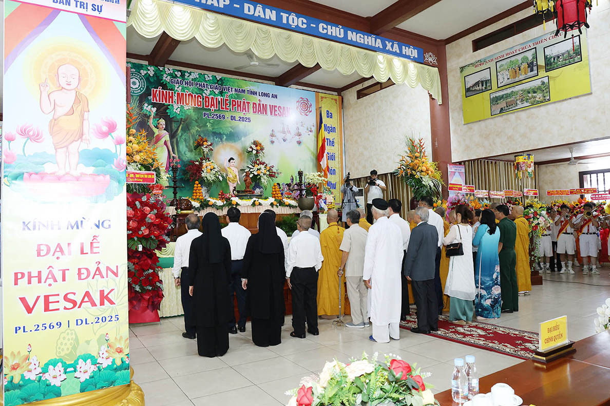 Phát biểu tại buổi lễ, ông Phạm Tấn Hòa – Phó Chủ tịch UBND tỉnh Long An thay mặt lãnh đạo tỉnh gửi lời chúc mừng Phật Đản và ghi nhận những đóng góp thiết thực của Giáo hội Phật giáo Việt Nam, đặc biệt là sự kiện Đại lễ Vesak Liên Hợp Quốc 2025 tổ chức tại Việt Nam. Ông cũng biểu dương tinh thần nhập thế của Phật giáo Long An trong các hoạt động an sinh xã hội như xóa đói giảm nghèo, đền ơn đáp nghĩa và chương trình “Chung tay vì người nghèo”. Riêng trong quý I/2025, Tăng Ni, Phật tử toàn tỉnh đã đóng góp gần 20 tỷ đồng cho công tác từ thiện.