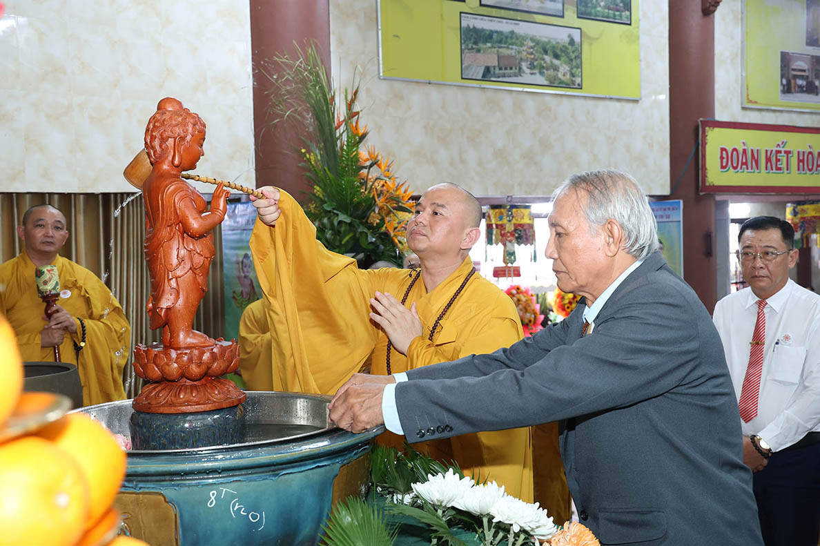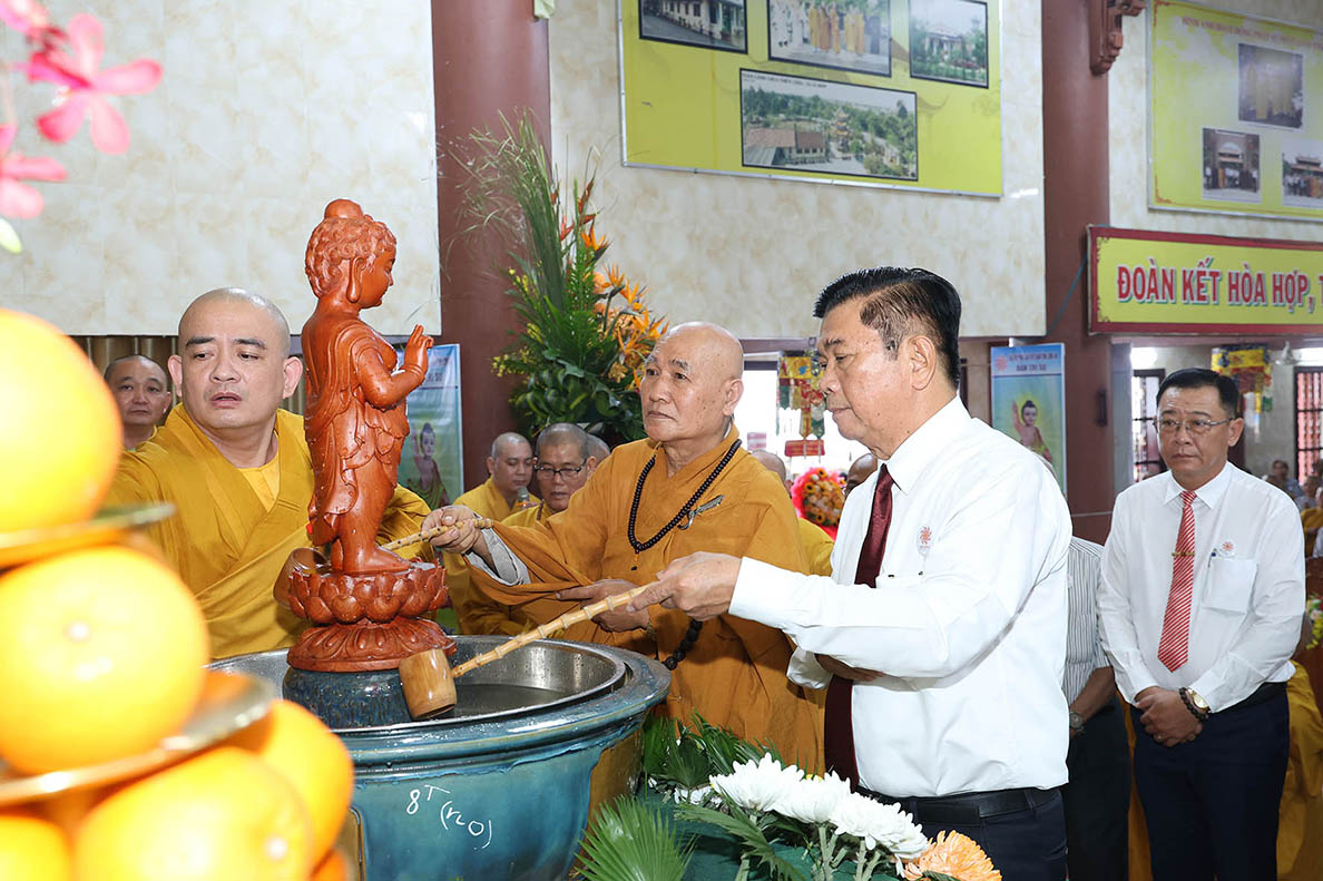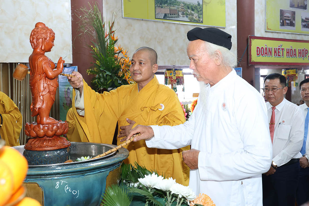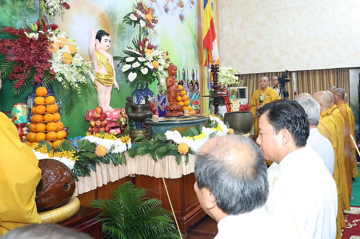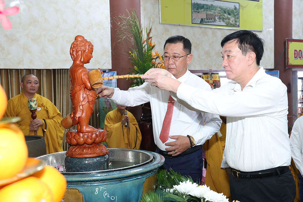 Phát biểu tại buổi lễ, ông Phạm Tấn Hòa – Phó Chủ tịch UBND tỉnh Long An thay mặt lãnh đạo tỉnh gửi lời chúc mừng Phật Đản và ghi nhận những đóng góp thiết thực của Giáo hội Phật giáo Việt Nam, đặc biệt là sự kiện Đại lễ Vesak Liên Hợp Quốc 2025 tổ chức tại Việt Nam. Ông cũng biểu dương tinh thần nhập thế của Phật giáo Long An trong các hoạt động an sinh xã hội như xóa đói giảm nghèo, đền ơn đáp nghĩa và chương trình “Chung tay vì người nghèo”. Riêng trong quý I/2025, Tăng Ni, Phật tử toàn tỉnh đã đóng góp gần 20 tỷ đồng cho công tác từ thiện.
