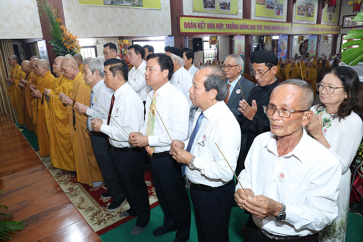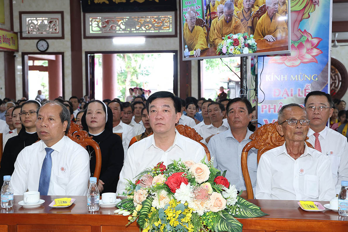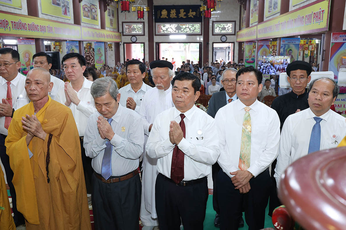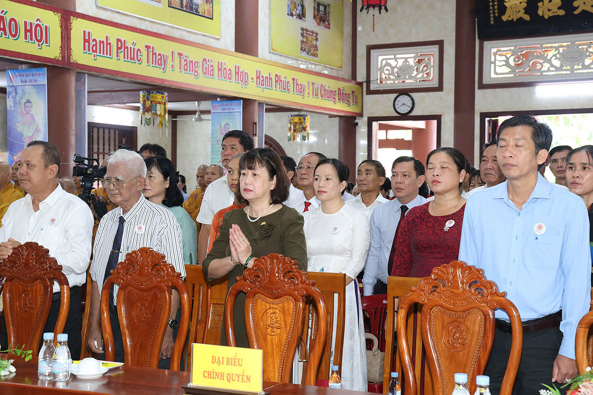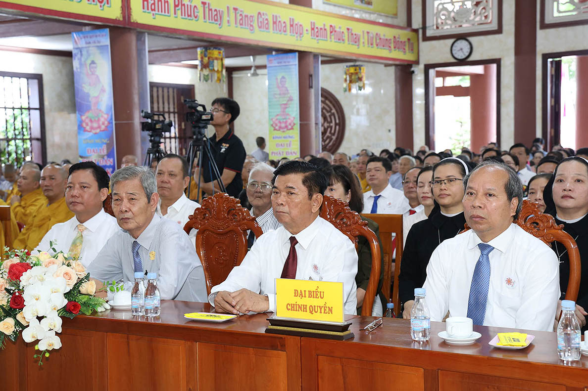 Về phía lãnh đạo chính quyền và khách quý có sự hiện diện của ông Phạm Thanh Phong – Nguyên Ủy viên BCH Trung ương Đảng, nguyên Bí thư Tỉnh ủy; ông Dương Quốc Xuân – Nguyên Chủ tịch UBND tỉnh; ông Hoàng Đình Cán – Trưởng ban Tuyên giáo – Dân vận Tỉnh ủy; ông Lâm Minh Hồng – Giám đốc Công an tỉnh; ông Phạm Tấn Hòa – Phó Chủ tịch UBND tỉnh; ông Đỗ Thanh Hùng – Phó Chủ tịch Ủy ban MTTQVN tỉnh cùng đại diện các ban ngành, đoàn thể, huyện, thị, thành phố và các tôn giáo bạn trên địa bàn tỉnh Long An.