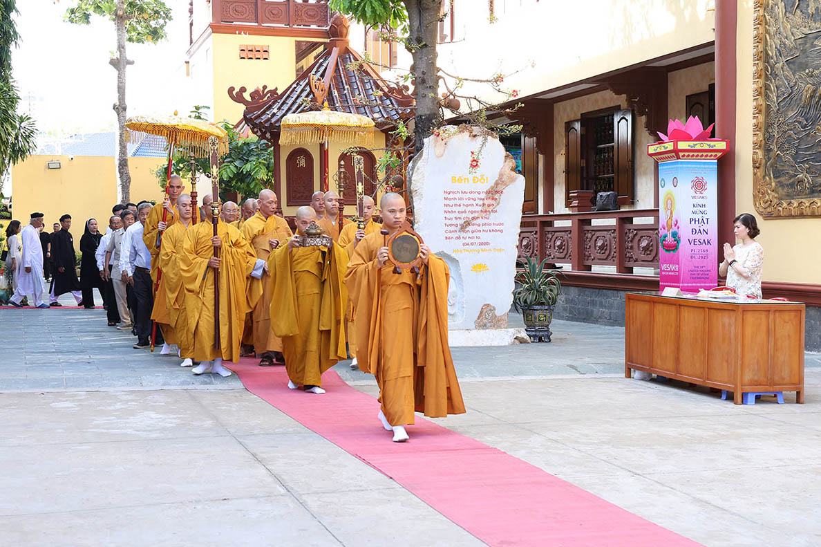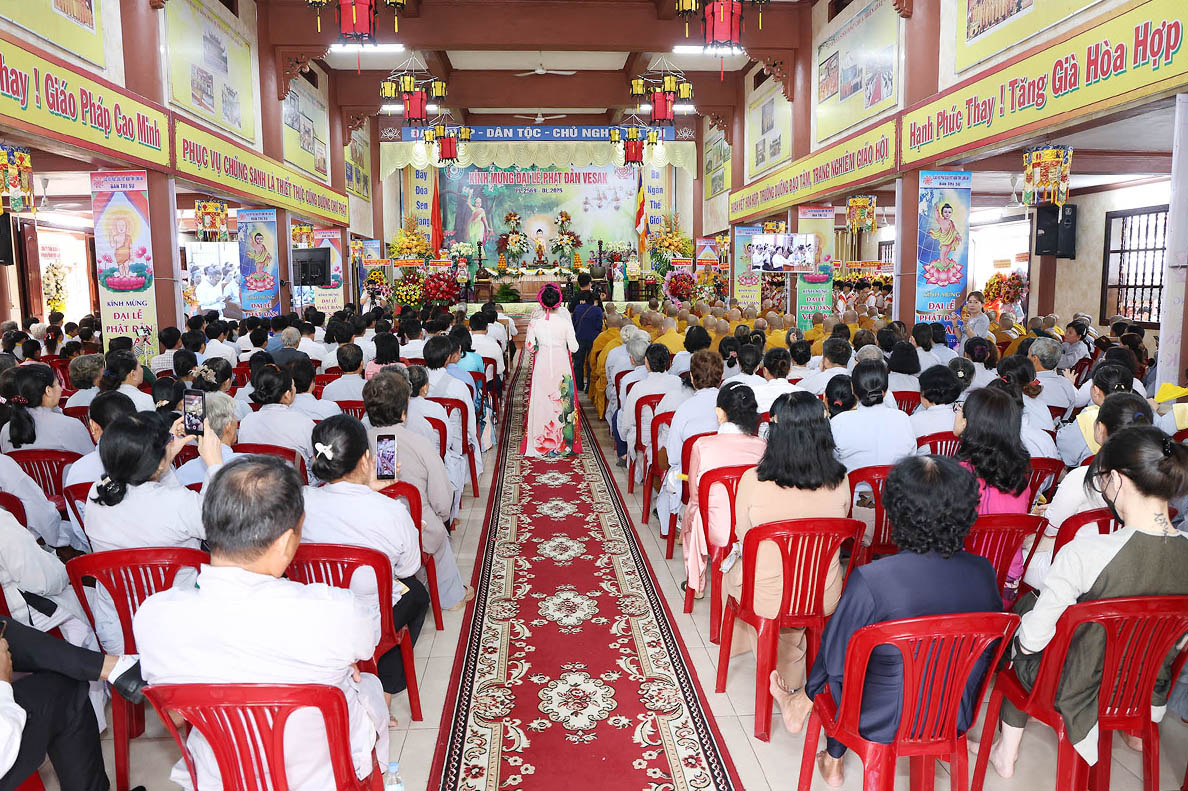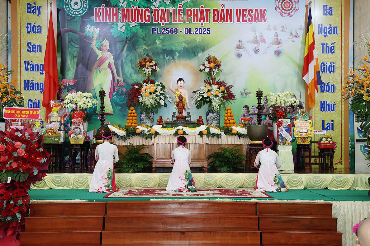 Sau nghi thức chào Quốc kỳ, Đạo kỳ, và phút nhập từ bi quán tưởng niệm Đức Thế Tôn, HT. Thích Minh Thiện đã tuyên đọc Thông điệp Phật Đản PL.2569 của Đức Pháp chủ GHPGVN. Thông điệp nhấn mạnh đến việc thể nhập “từ bi tam muội”, sống yêu thương và lan tỏa ánh sáng trí tuệ Phật đến muôn loài. Đức Pháp chủ cũng kêu gọi Tăng Ni, Phật tử đoàn kết, lan tỏa tinh thần từ bi, trí tuệ, góp phần kiến tạo thế giới hòa bình và phồn vinh.