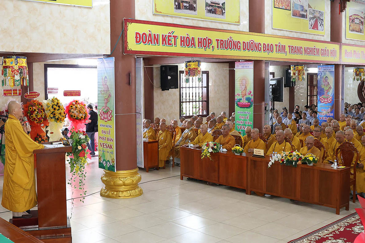 Thay mặt Ban Trị sự, HT. Thích Minh Thiện gửi lời tri ân sâu sắc đến chính quyền các cấp, chư Tôn đức và toàn thể Phật tử đã đồng hành, hỗ trợ tổ chức thành công Đại lễ Vesak. Nhân dịp kỷ niệm 50 năm Ngày Giải phóng miền Nam (30/4/1975 – 30/4/2025), Phật giáo tỉnh cũng đẩy mạnh các hoạt động tưởng niệm anh hùng liệt sĩ, chăm lo người có công, tổ chức lễ tri ân tại các nghĩa trang liệt sĩ và các chương trình thiện nguyện lan tỏa tinh thần từ bi, tri ân và đoàn kết.