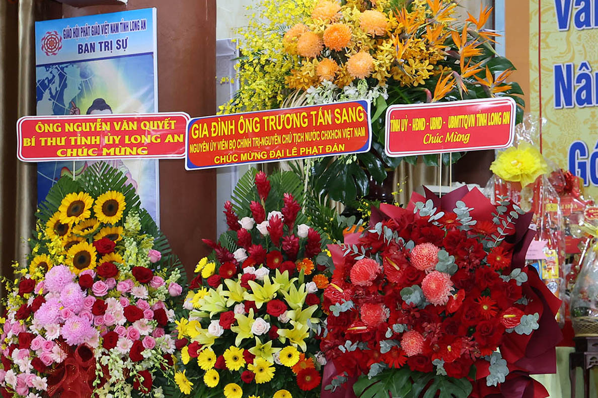 Đại lễ còn vinh dự đón nhận nhiều lẵng hoa, quà chúc mừng từ lãnh đạo Tỉnh ủy, UBND, UBMTTQVN tỉnh, các ban ngành và đặc biệt là lẵng hoa của Nguyên Chủ tịch nước Trương Tấn Sang, Bí thư Tỉnh ủy Nguyễn Văn Quyết cùng nhiều vị lãnh đạo, chức sắc tôn giáo.