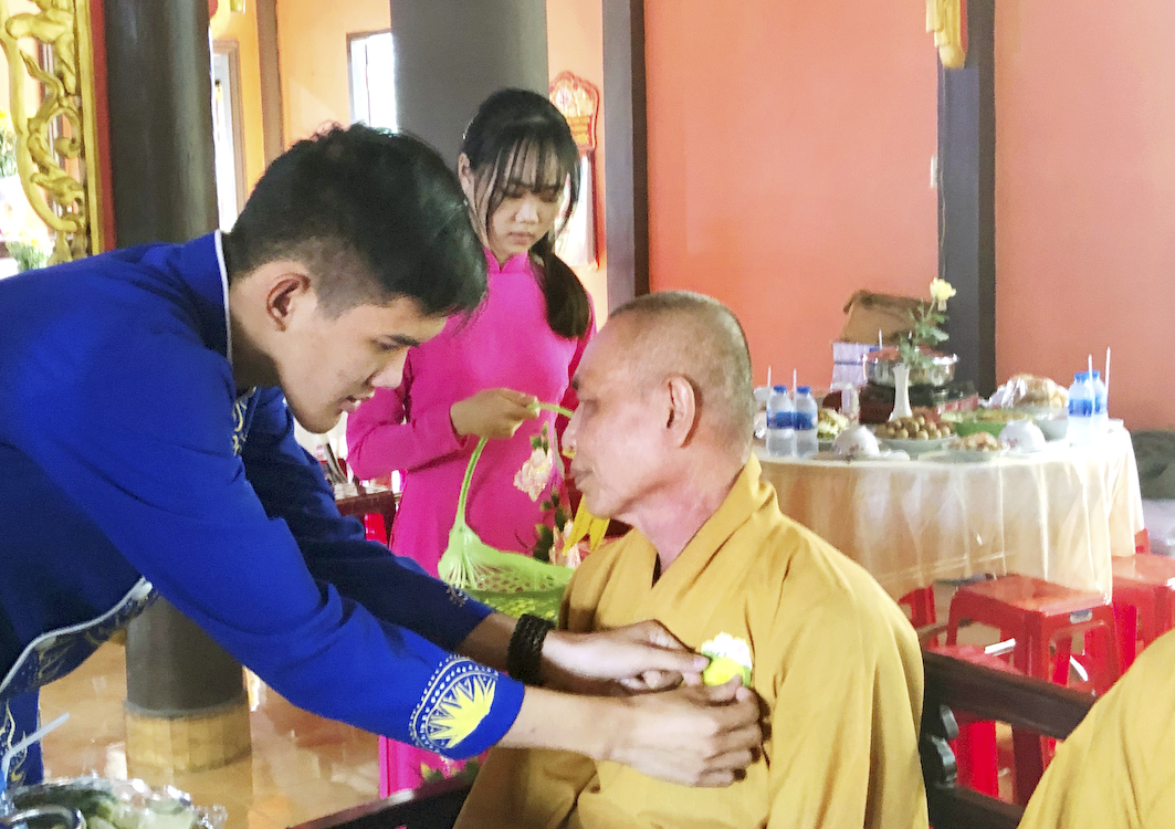 Tại buổi lễ Đại Đức Thích Hóa Minh – Trưởng Ban Trị Sự GHPGVN huyện Thủ Thừa đã cung thỉnh Hòa Thượng Thích Chơn Đạo giới thiệu về ý nghĩa buổi lễ Vu Lan. Các em thanh thiếu niên Phật tử Tuổi Trẻ Thiên Châu cài hoa hồng cúng dường Chư Tôn Đức. Đại Đức Thích Hóa Minh cung đối trước Chư Tôn Đức tác pháp cúng dường pháp y.