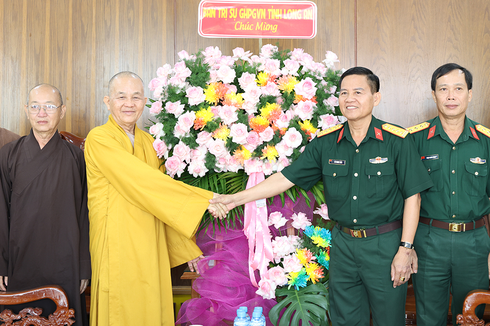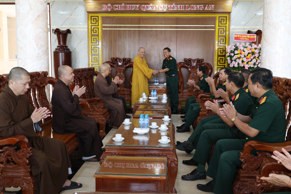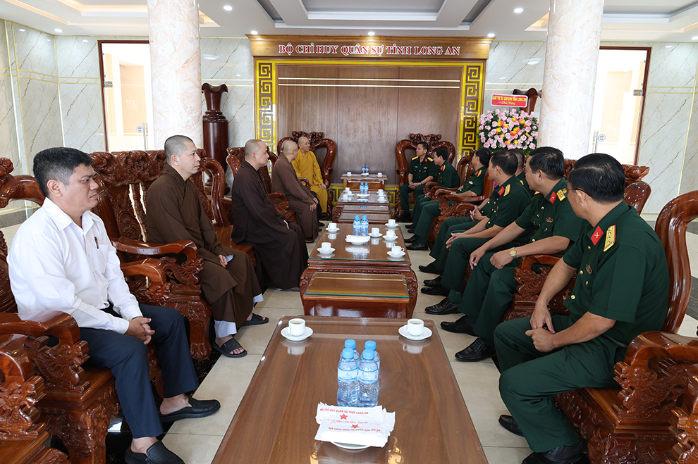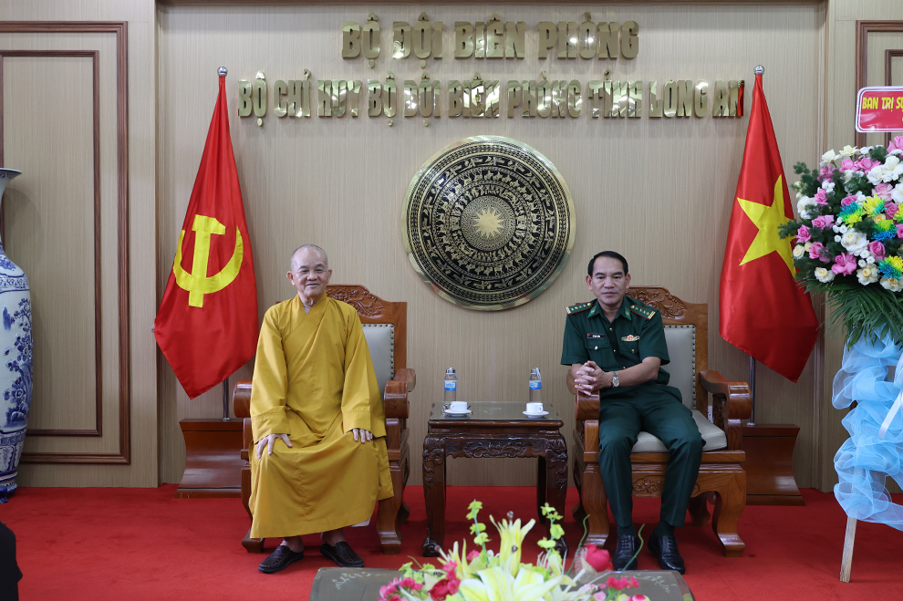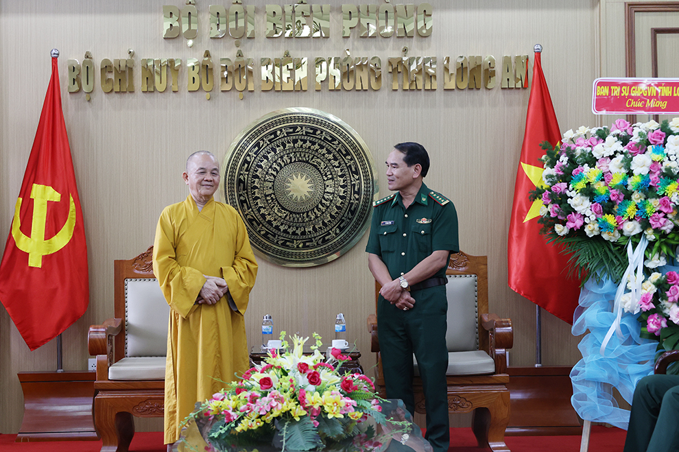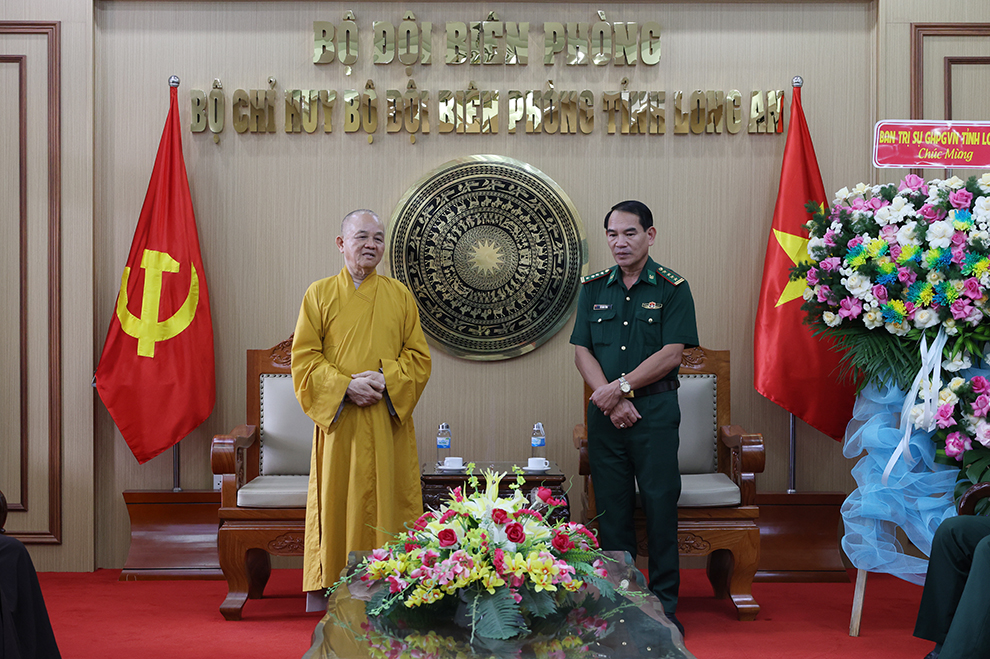 Thay mặt Bộ CHQS tỉnh, Đại tá Hà Thanh Tuấn và Đại tá Nguyễn Tuấn – Phó Chỉ huy trưởng Bộ đội Biên phòng tỉnh Long An chân thành cảm ơn sự quan tâm của Ban Trị sự GHPGVN tỉnh Long An. Đồng thời mong muốn, thời gian tới, sự phối hợp hoạt động giữa Ban Trị sự GHPGVN tỉnh Long An và Bộ CHQS tỉnh, Bộ đội Biên Phòng tỉnh ngày càng bền chặt hơn, tổ chức được nhiều hoạt động ý nghĩa, góp phần xây dựng mối đoàn kết Tôn giáo, đoàn kết quân dân.