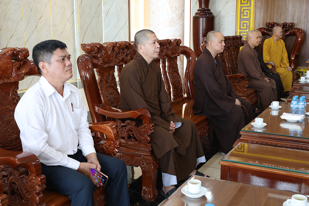 Đoàn do HT. Thích Minh Thiện – UV HĐTS, Phó ban Hoằng pháp TƯ, Trưởng BTS GHPGVN tỉnh Long An làm trưởng đoàn. Tháp tùng phái đoàn có: TT. Thích Quảng Tâm – UV HĐTS, Phó Trưởng ban Thường trực BTS GHPGVN tỉnh; TT. Thích Đức Hoàng – Phó BTS GHPGVN tỉnh; ĐĐ. Thích Lệ Ngôn – Phó BTS kiêm Trưởng ban Hoằng pháp GHPGVN tỉnh; ĐĐ. Thích Thiện Danh – Phó Thư ký kiêm Chánh Văn phòng BTS GHPGVN tỉnh .
