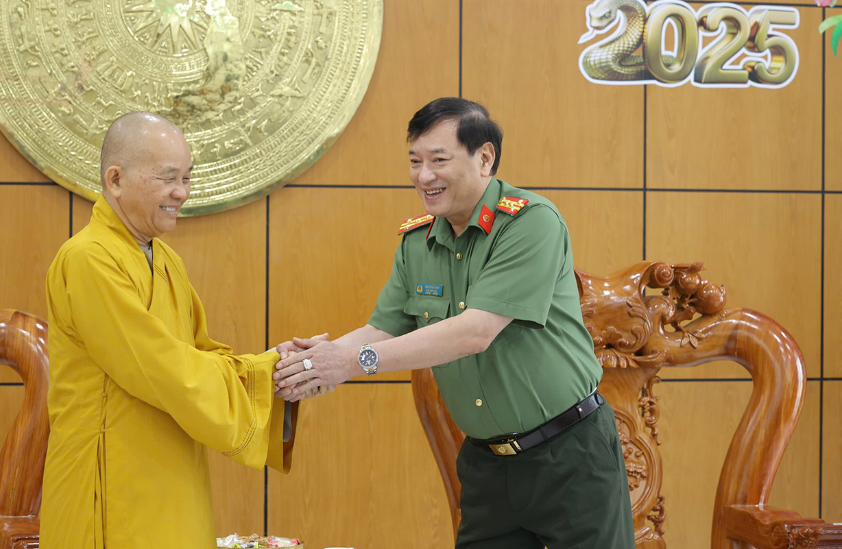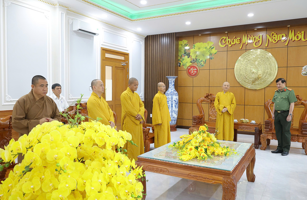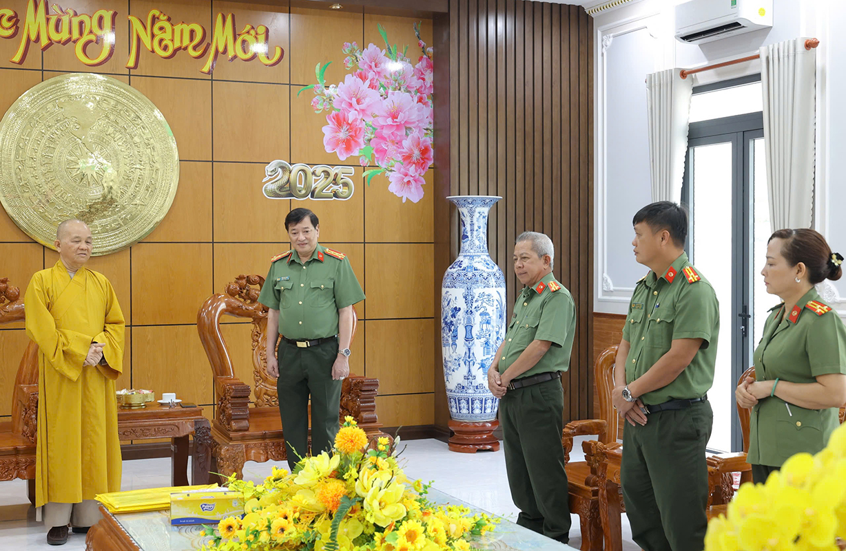 Thay mặt Đảng ủy – Ban Giám đốc Công an tỉnh, Đại tá Văn Công Minh chúc Hòa thượng Thích Minh Thiện và toàn thể Tăng ni, Phật tử mạnh khỏe, đón năm mới trong an lành, hạnh phúc, đạt nhiều thành công trong công tác Phật sự. Đại tá Phó Giám đốc cảm ơn những đóng góp của các tôn giáo trong phong trào toàn dân bảo vệ an ninh Tổ quốc thời gian qua. Đồng thời, mong muốn, các tôn giáo, trong đó có Phật giáo, tiếp tục phát huy tinh thần đoàn kết, phối hợp với lực lượng Công an trong công tác đảm bảo ANTT trên địa bàn tỉnh./.